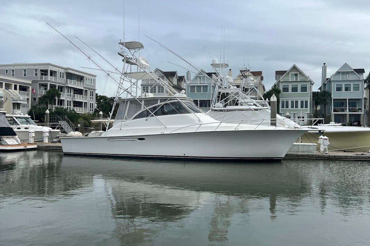 We had the opportunity to fish the new 48 equipped with optional twin CAT 3196s with electronic controls pushing out 660 hp each. (Standard power is a twin Detroit 6V-92TA package at 625 hp each.) All indications say this package will be very fuel-efficient. Nineteen-hundred rpm gives 27 knots for a quite reasonable cruising speed, and she maxed out at 2,335 rpm giving a 32.5-knot top speed. One thousand rpm means 11.5 knots. In fact, this hull is efficient enough to get up on plane and run at 18 knots on just one engine turning 2,000 rpm.