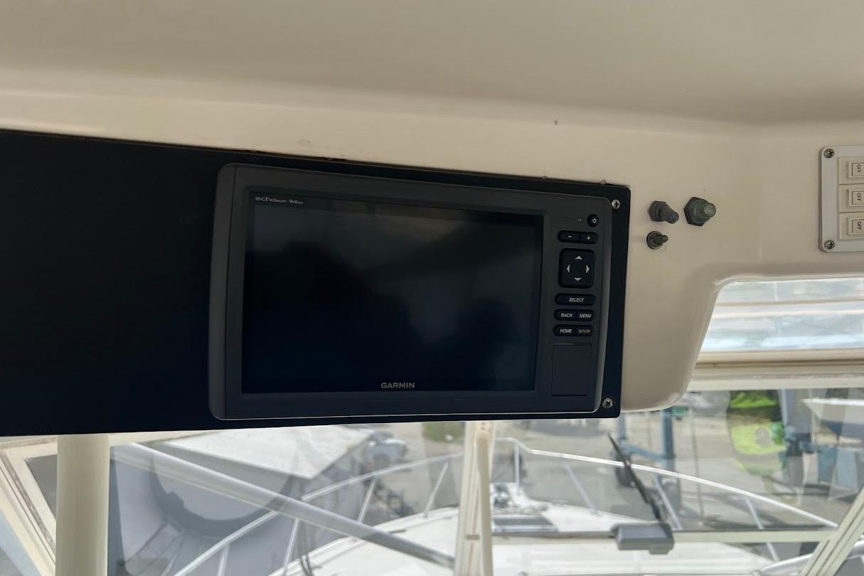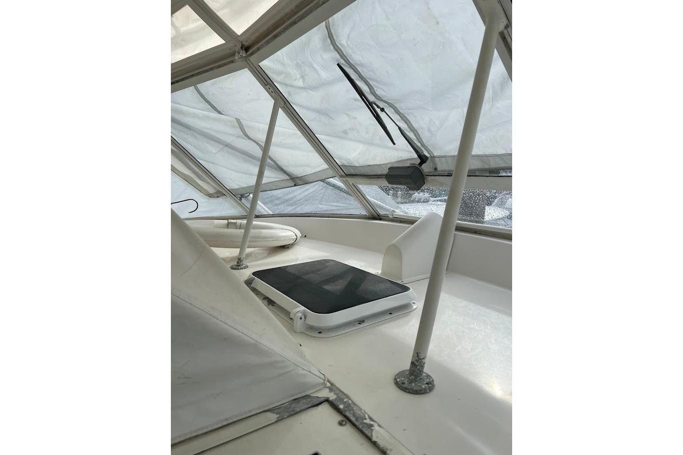 Bridge DeckRaised Bridge Deck Helm and seating that puts you right in the middle of the Action!! L-shape sofa and a bench seating. There are two Stidd Helm Chairs and AC/Heat.