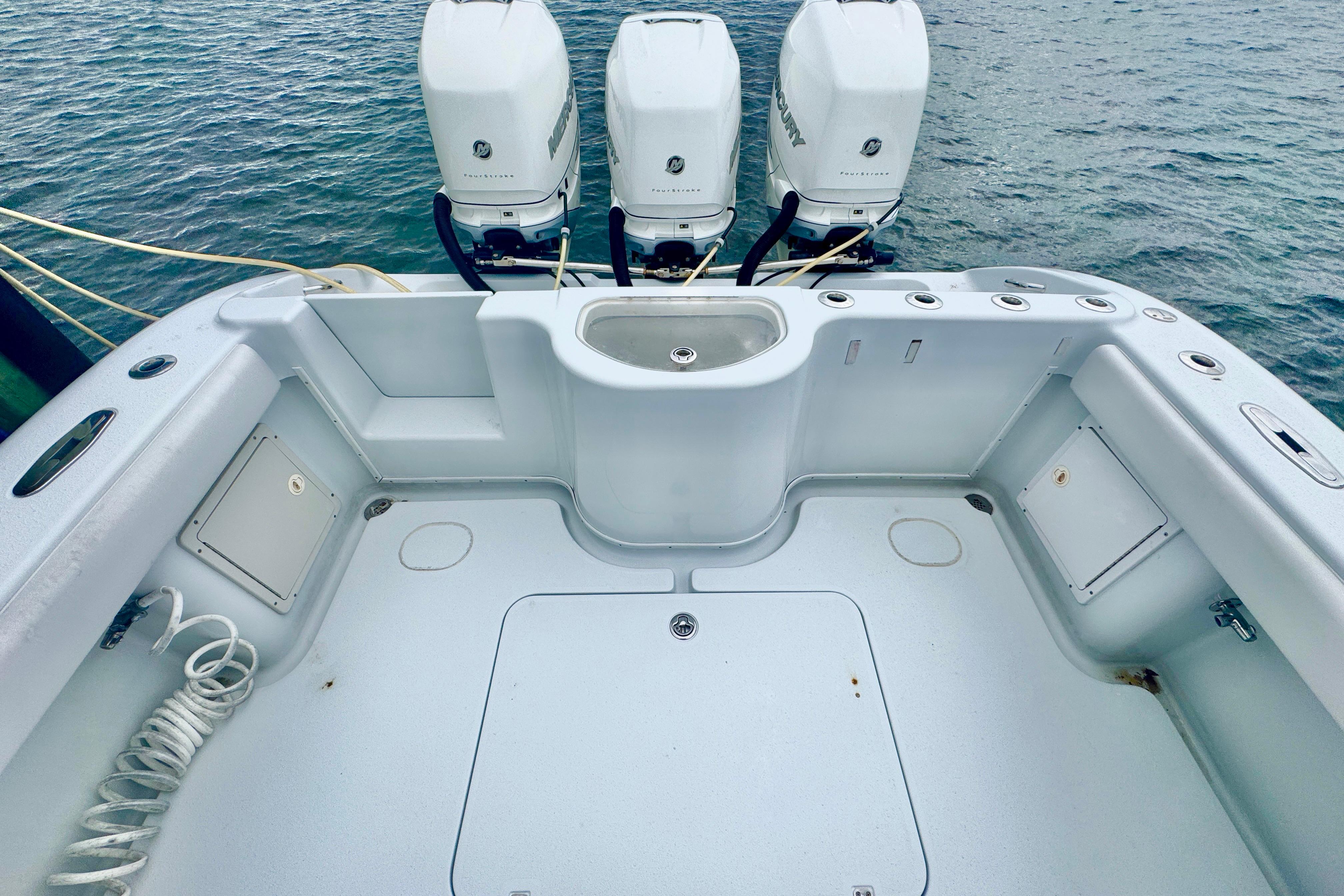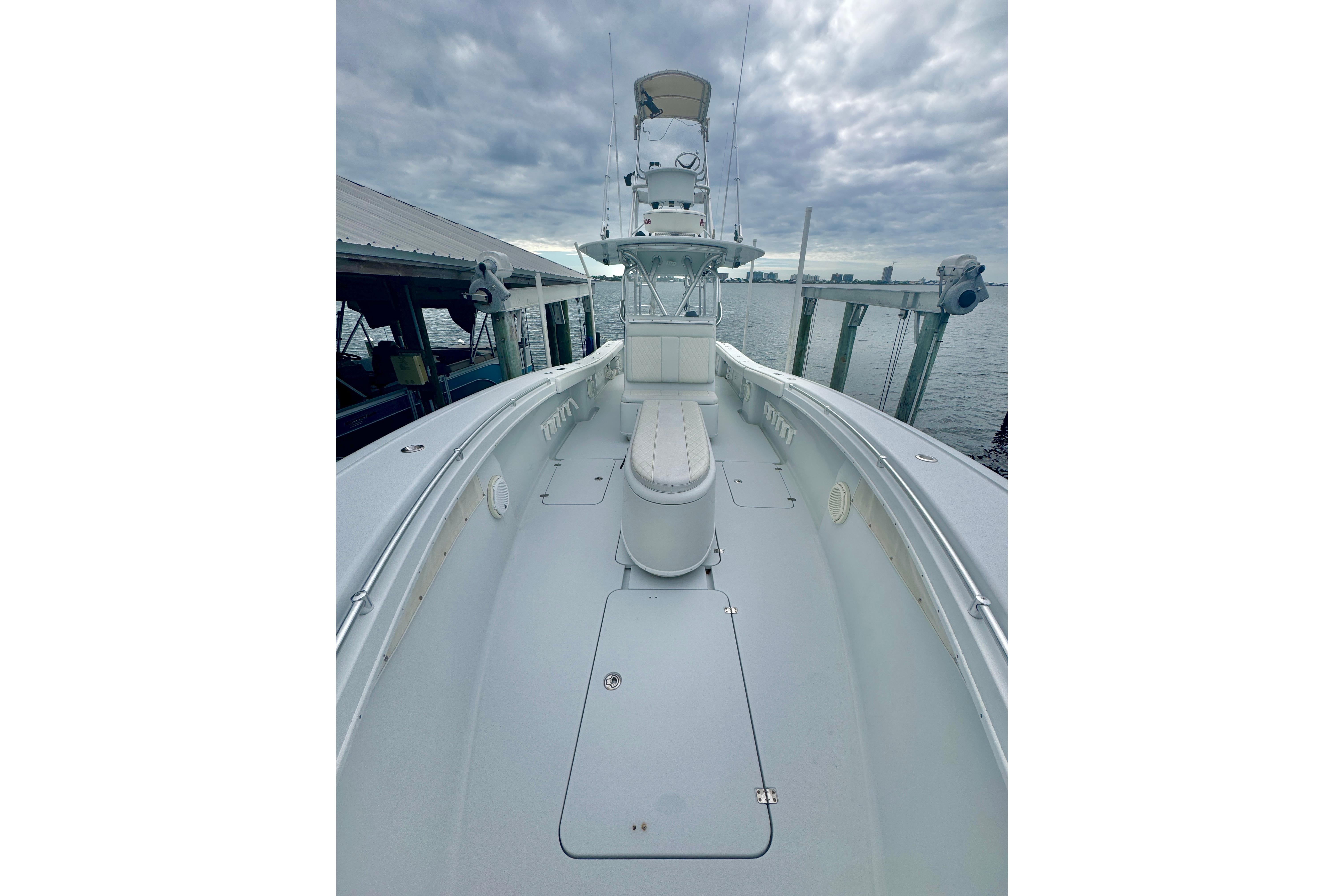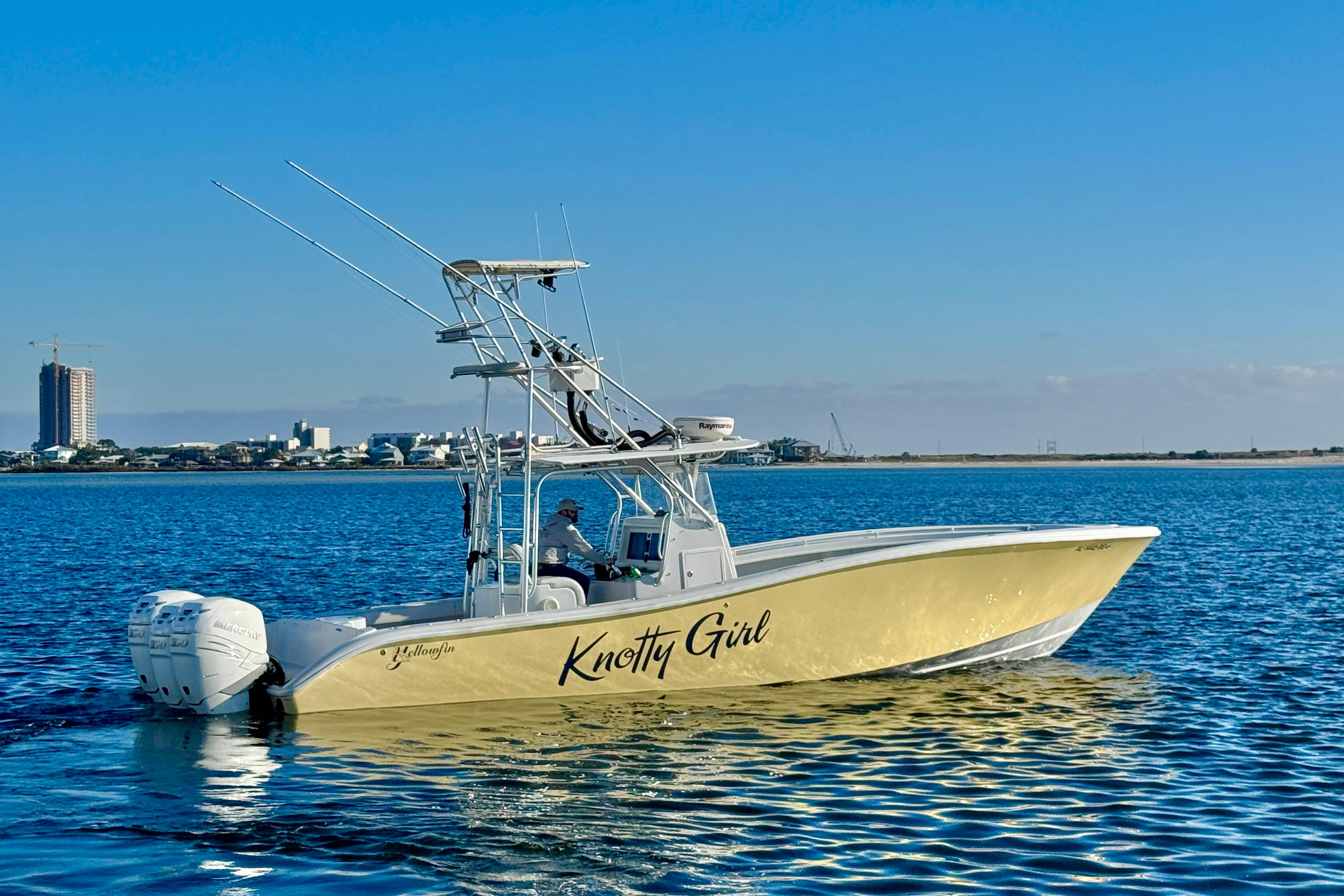 If you've been looking for a deal on what is, hands-down, one of the most iconic center consoles ever built, then you've found it here. "Knotty Lady" is a super-clean, REPOWERED (2019) example of the 36 Offshore and was sent back to Yellowfin to be updated, repainted, new tanks installed, new transom reinforced for triples, updated upholstery (2024), 3-sided helm enclosure and wings, electronics and the list goes on! She sport a custom triple-axle aluminum trailer, a tower (folds for trailering) and many other features for hard-core angling! Performance is impressive with a fuel burn of 1.4 mpg at 43 mph!