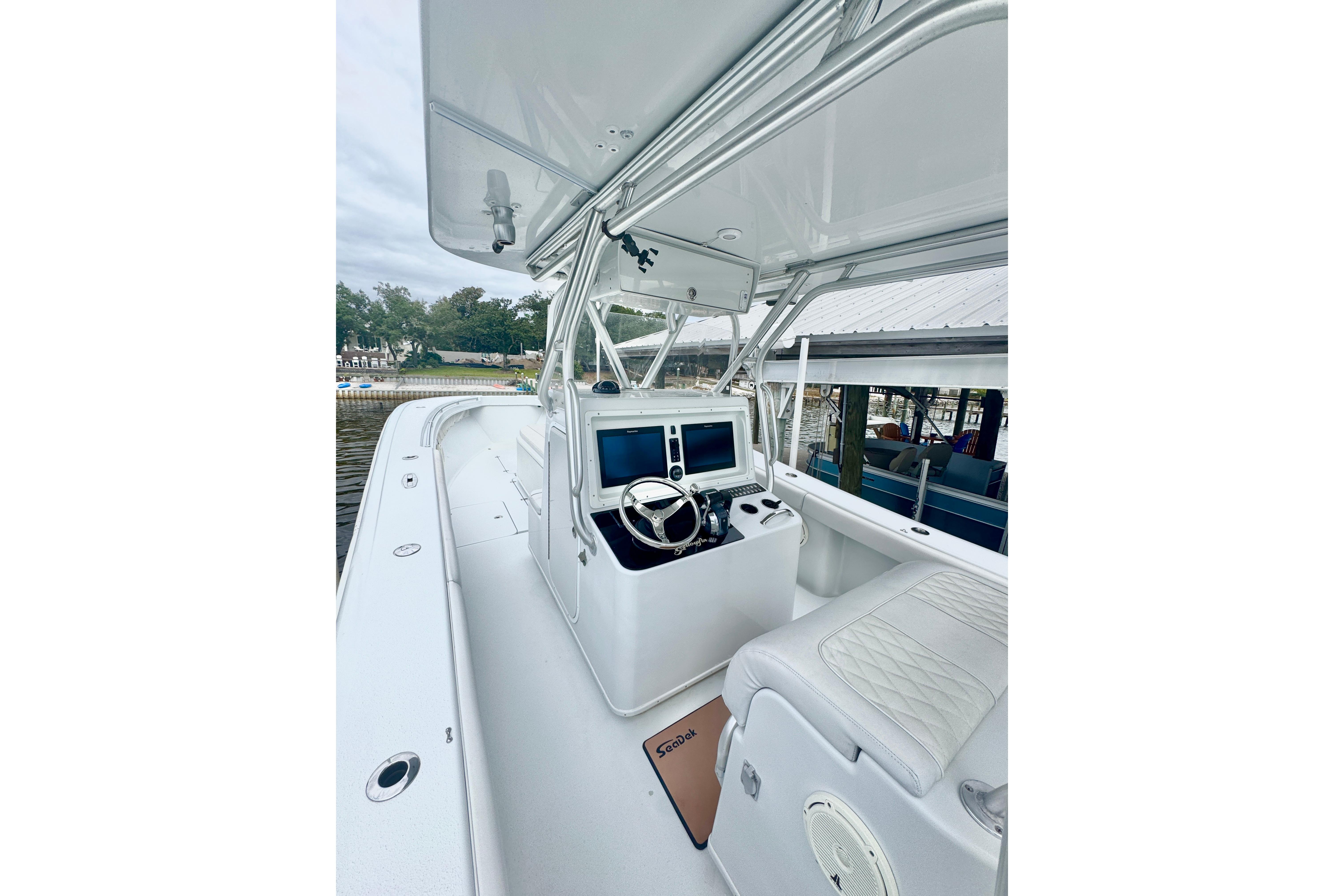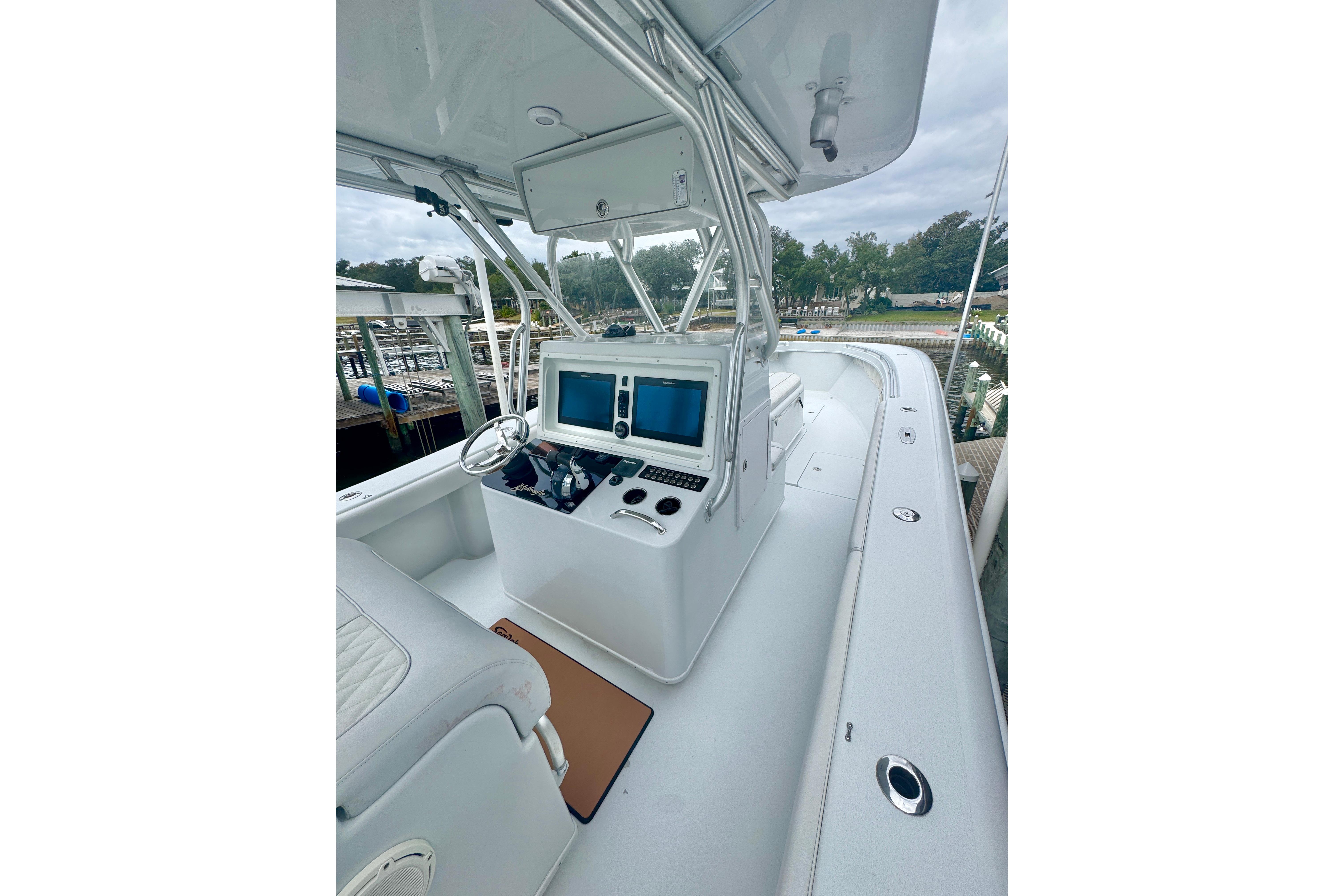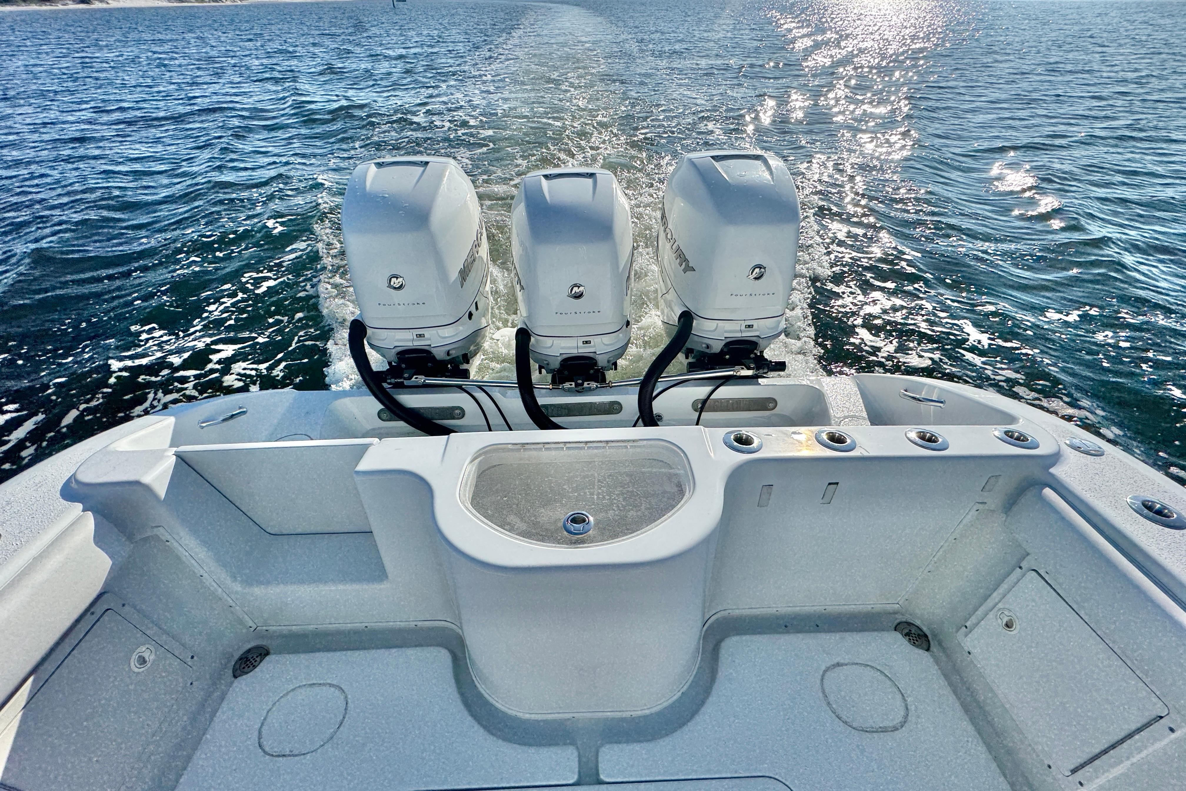 If you've been looking for a deal on what is, hands-down, one of the most iconic center consoles ever built, then you've found it here. "Knotty Lady" is a super-clean, REPOWERED (2019) example of the 36 Offshore and was sent back to Yellowfin to be updated, repainted, new tanks installed, new transom reinforced for triples, updated upholstery (2024), 3-sided helm enclosure and wings, electronics and the list goes on! She sport a custom triple-axle aluminum trailer, a tower (folds for trailering) and many other features for hard-core angling! Performance is impressive with a fuel burn of 1.4 mpg at 43 mph!