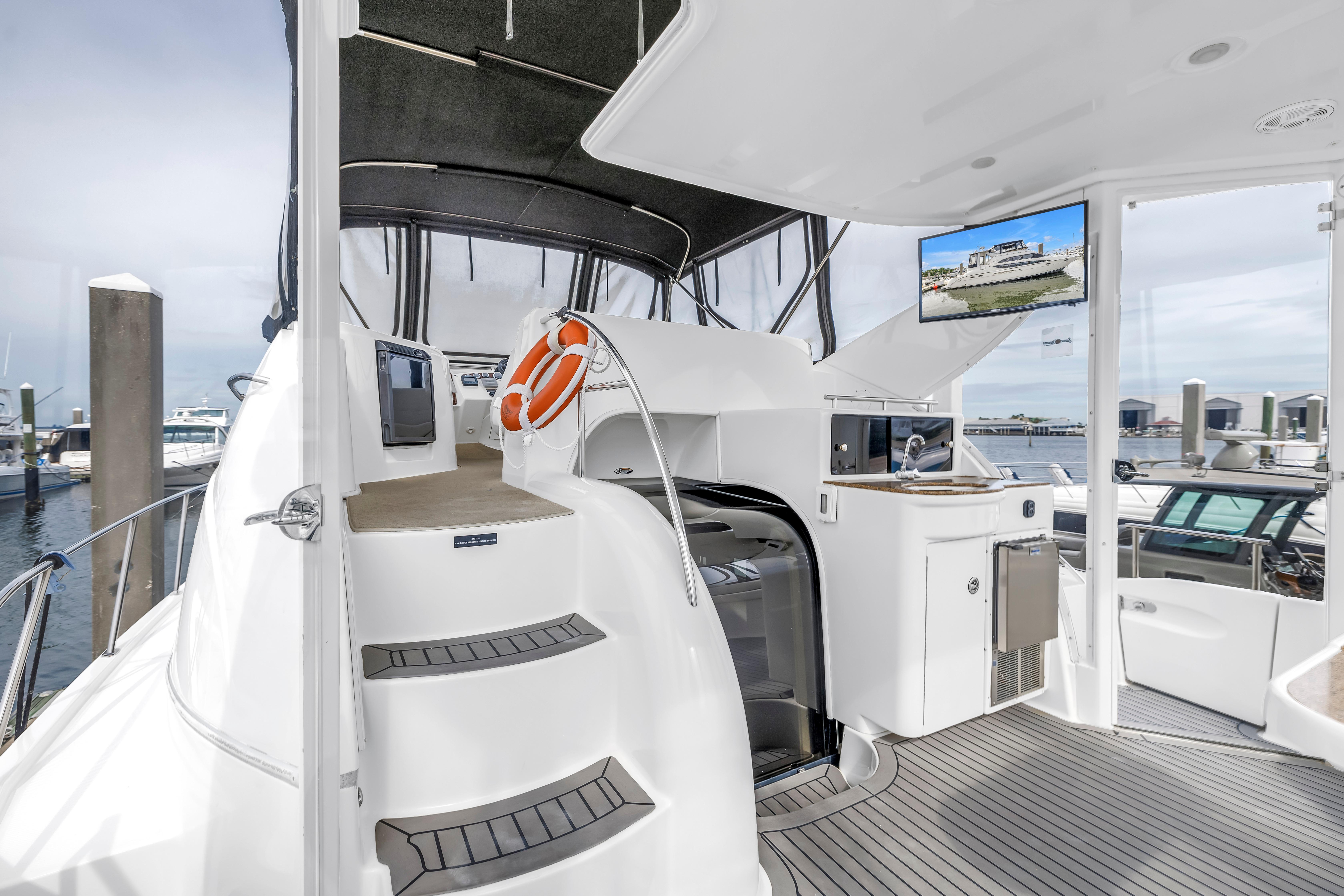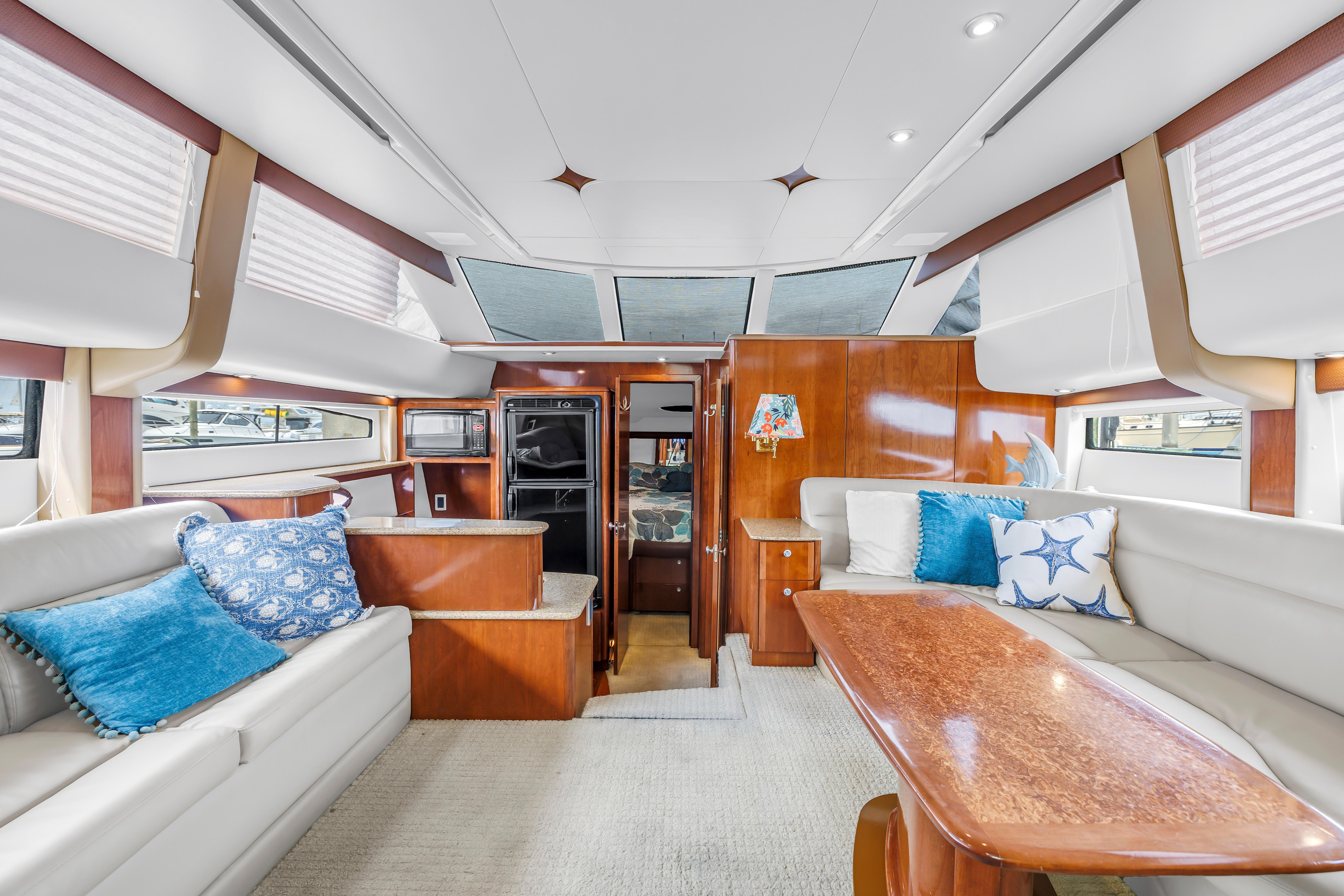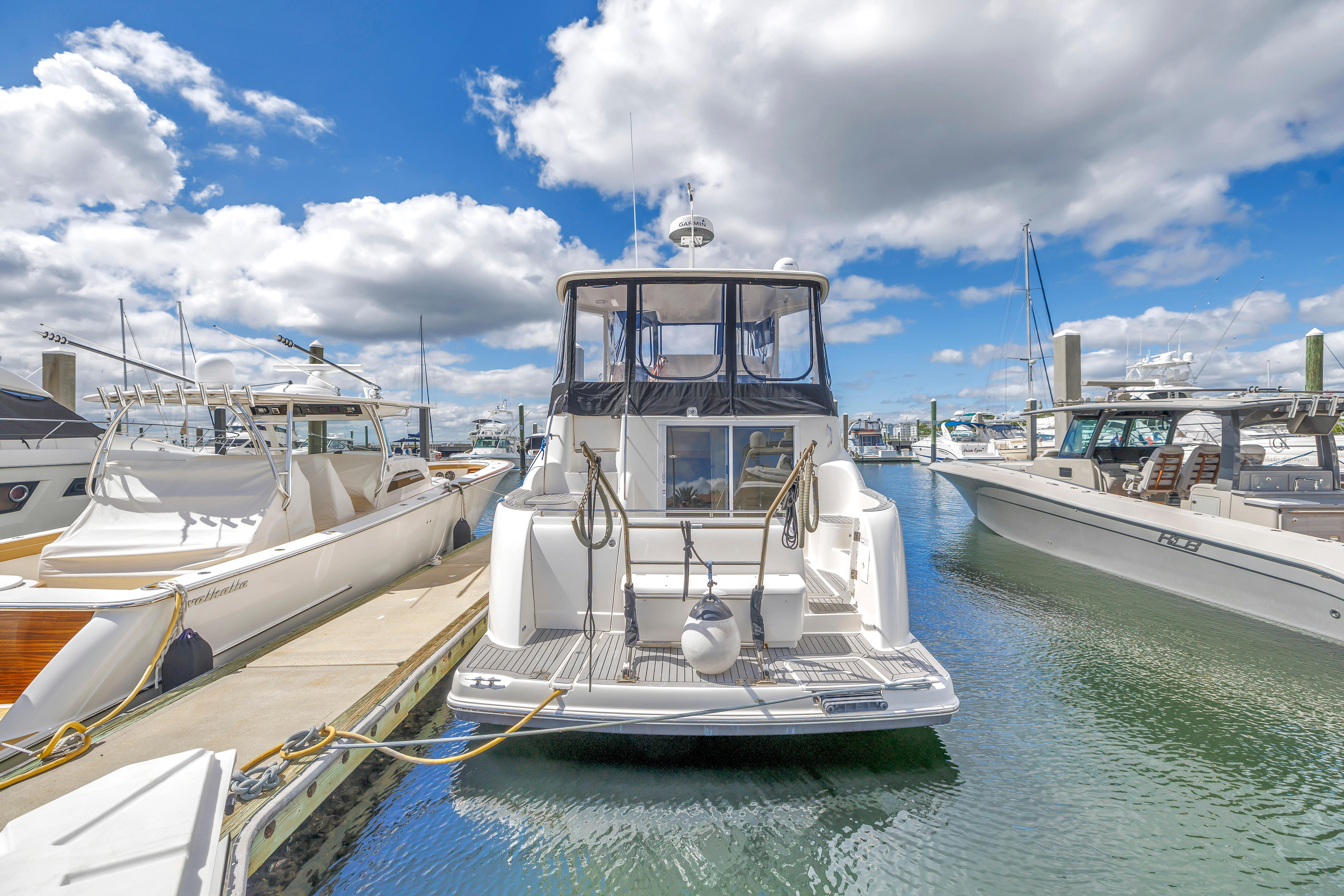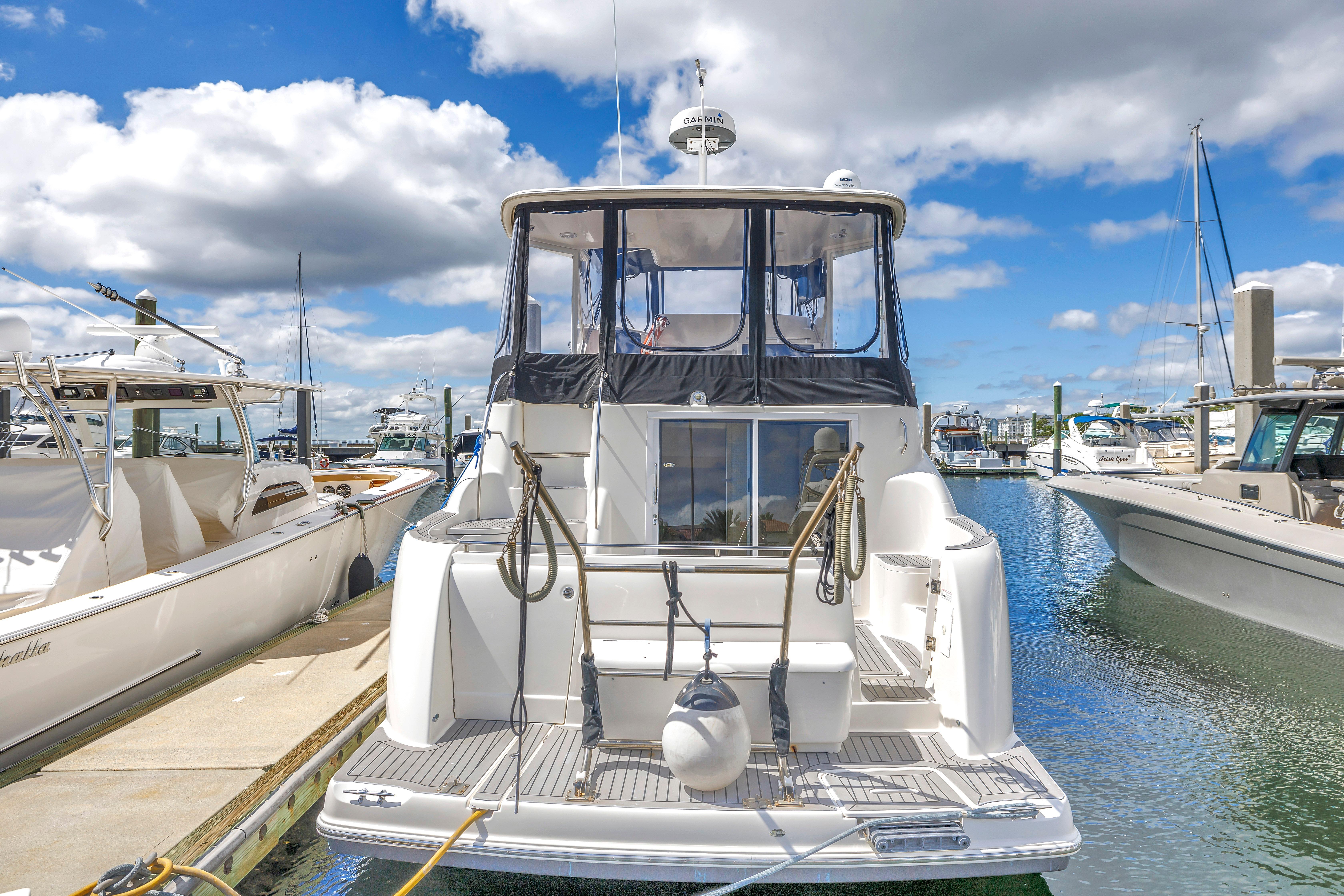 The 459 Motoryacht's attractive design succeeds at every level. To start, she offers superior cruisability for a family while providing the extra measure of privacy that owners crave. Her guest stateroom is located forward with its own private head facilities, while the full-beam master stateroom with its en-suite head and shower is aft. Best of all, this luxurious master suite boasts private access to the spacious cockpit through large sliding glass doors. The 459 is also thoughtfully designed for entertaining, offering well-appointed bridge and aft decks, plenty of natural light and fresh breezes in her interior spaces and outstanding views from the generous salon. Meridian understands all the things that are important on a cruising yacht. Let your cruising celebration begin.
