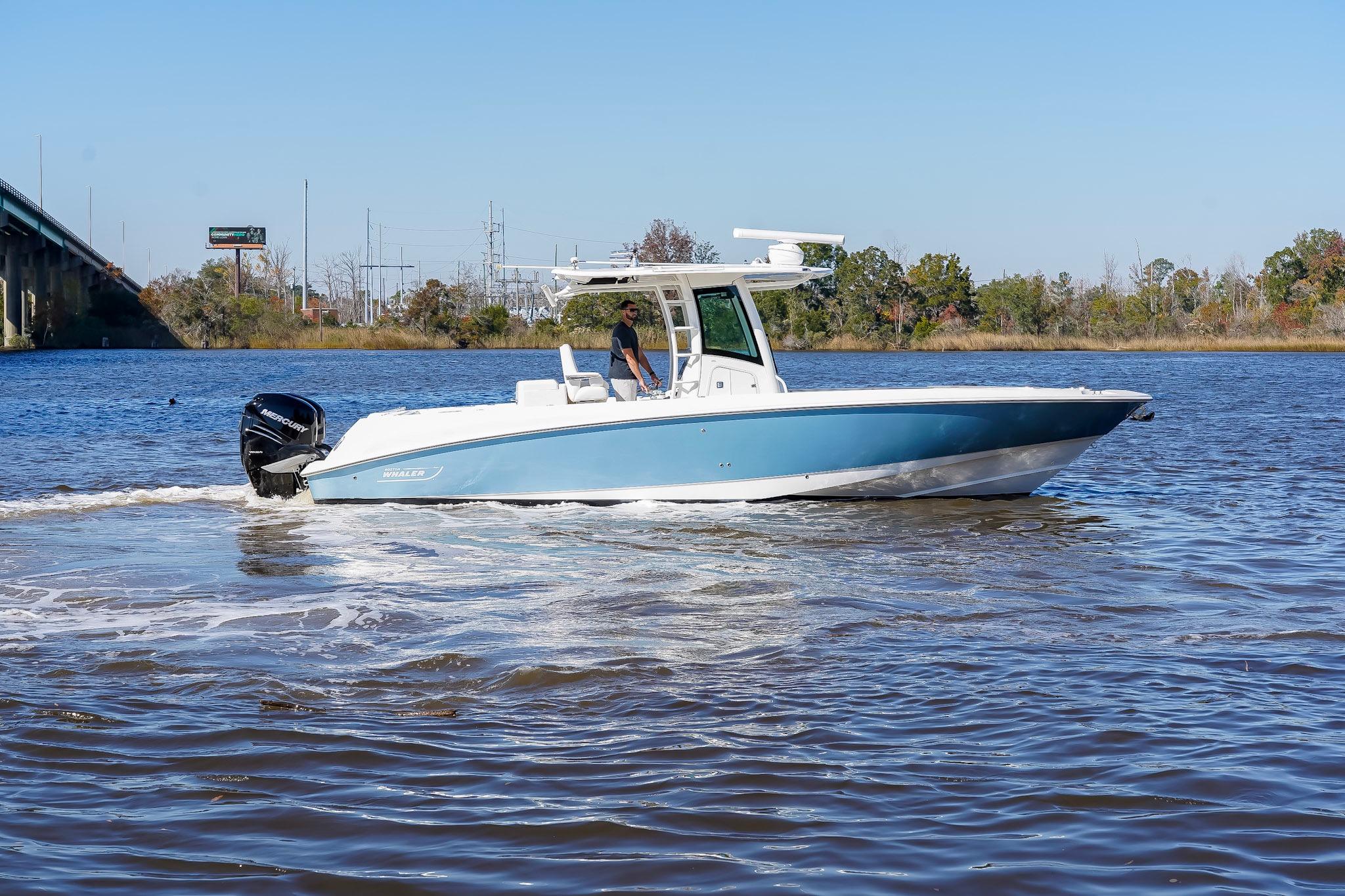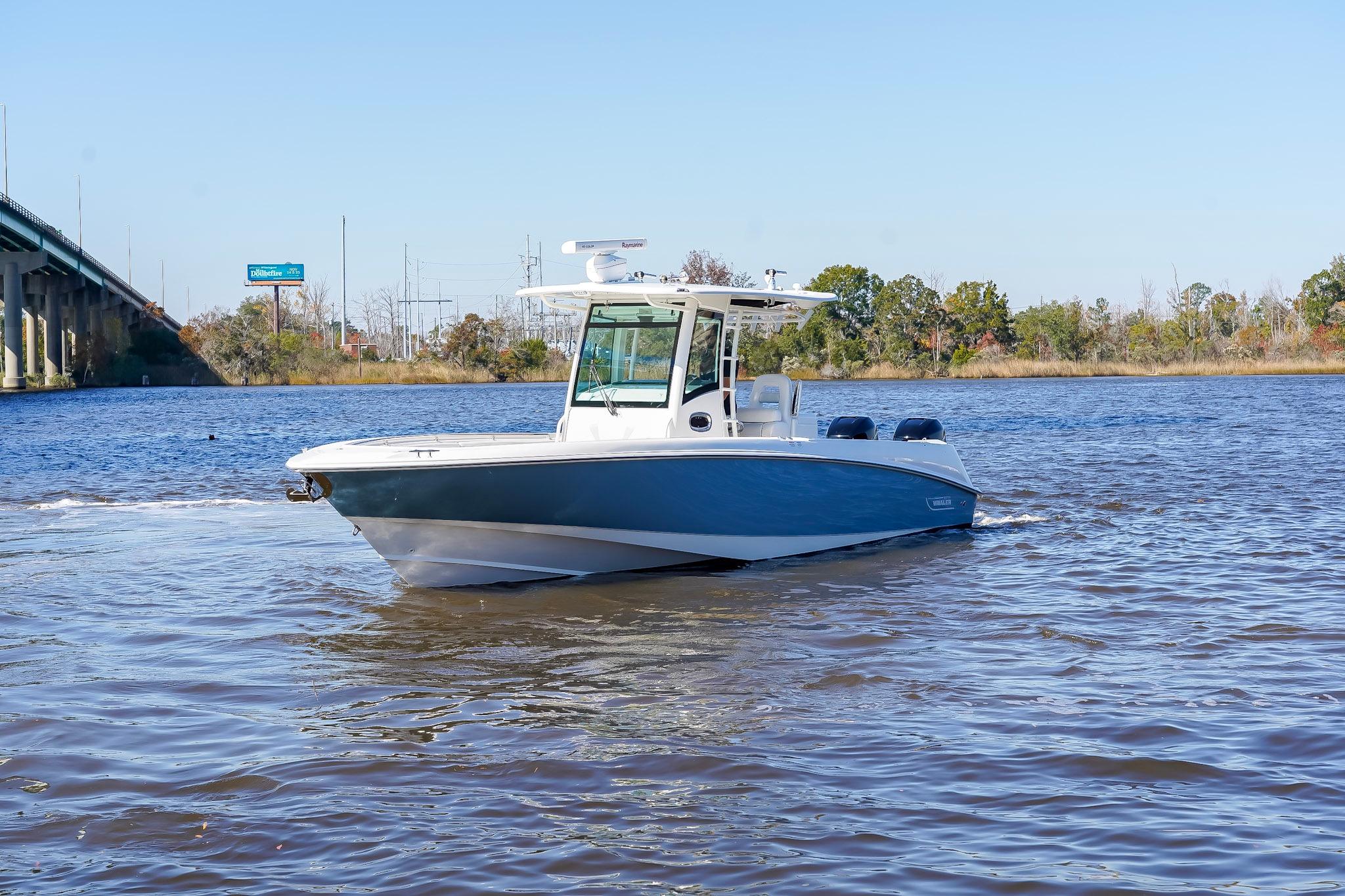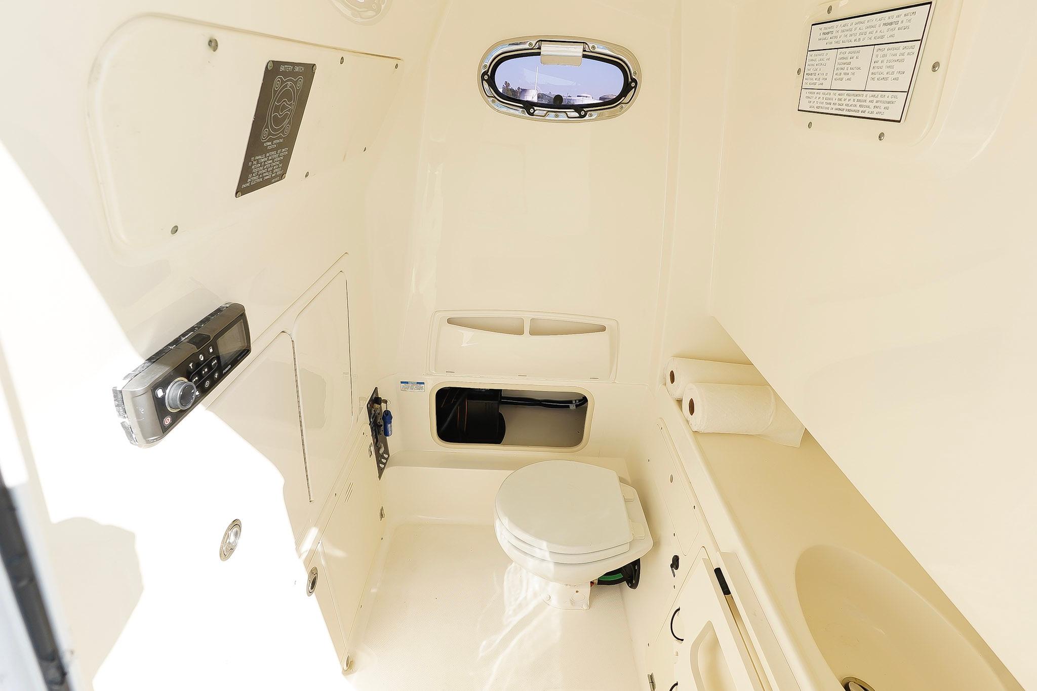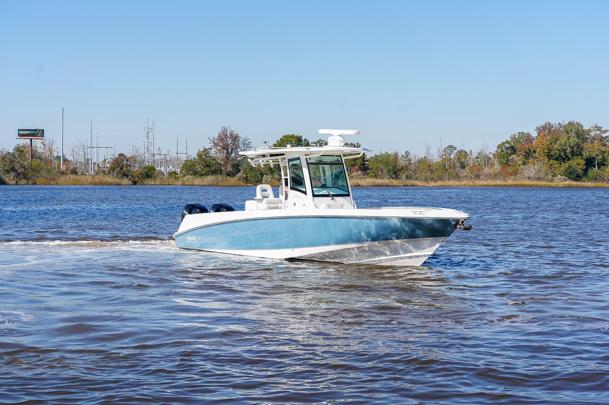 - Freshwater system with 40 gal tank, sink in console, transom shower, prep station and anchor washdown