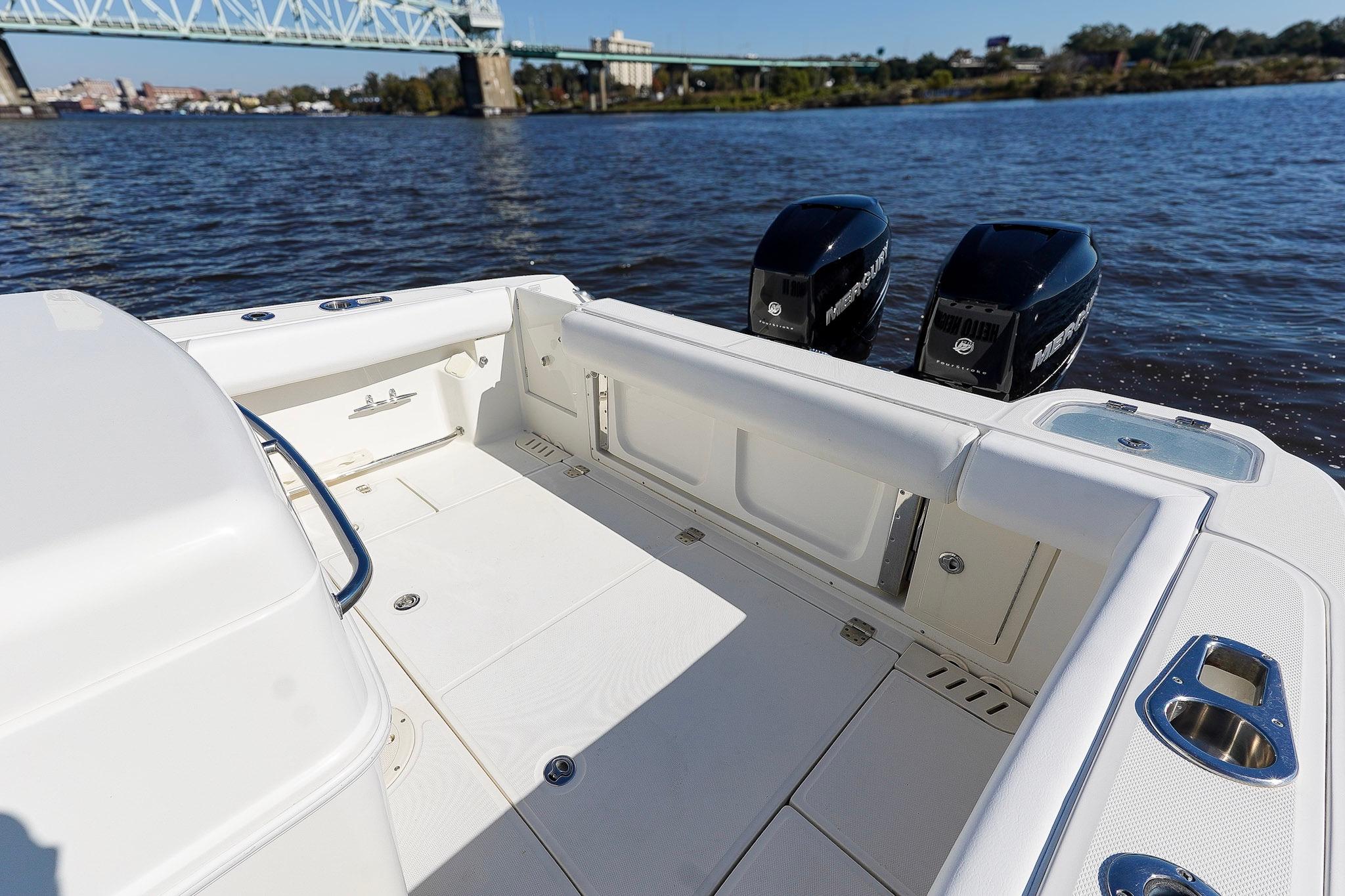 - Insulated in-floor fishboxes with pump-out - (2) aft at 80 gal each, (1) forward at 108 gal