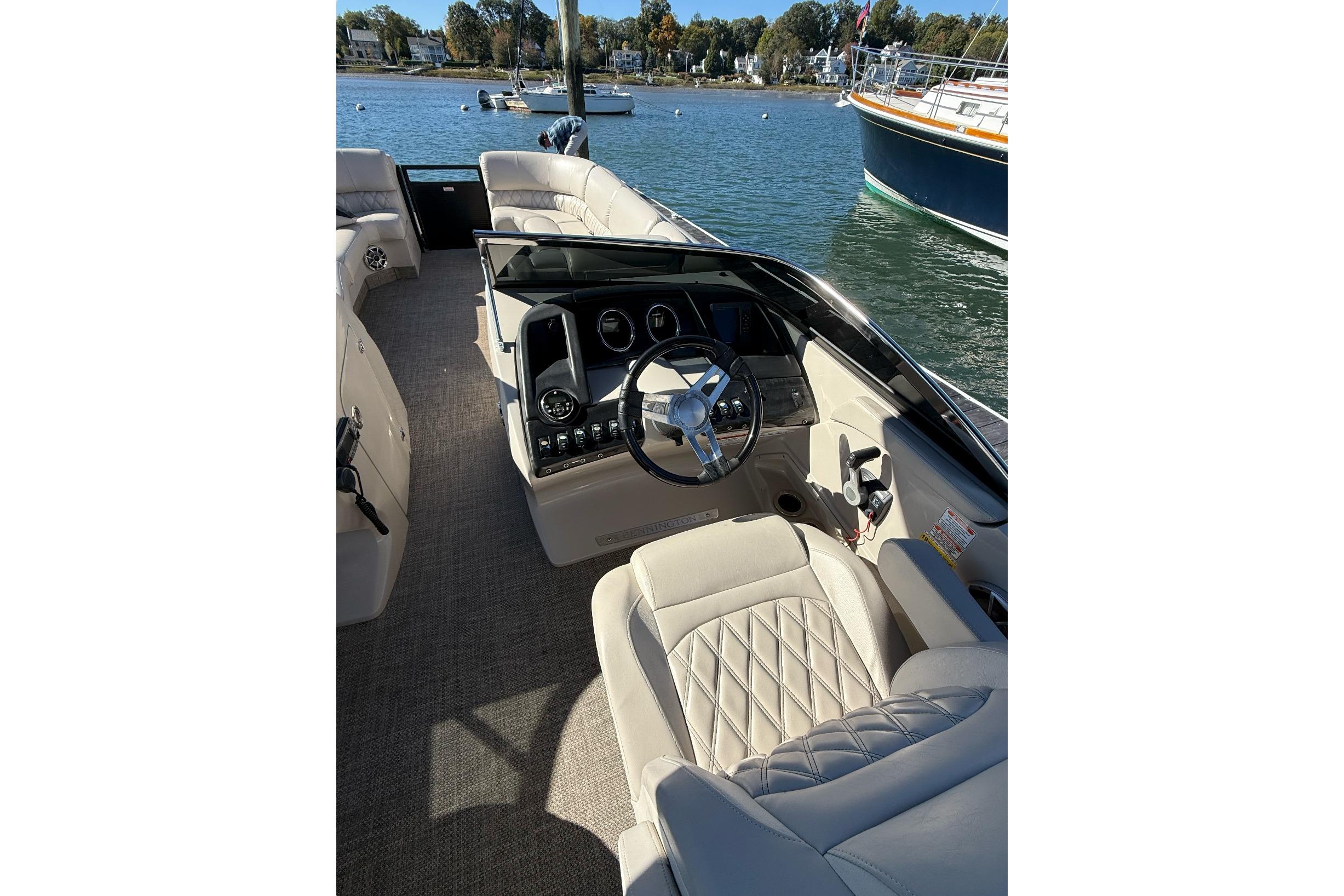 "The 2015 Bennington 2874 QCW is a premium 28-foot pontoon boat from the flagship Q Series, known for its luxury, power, and high-end features. The QCW designation stands for Quad Console Walkthrough floor plan"