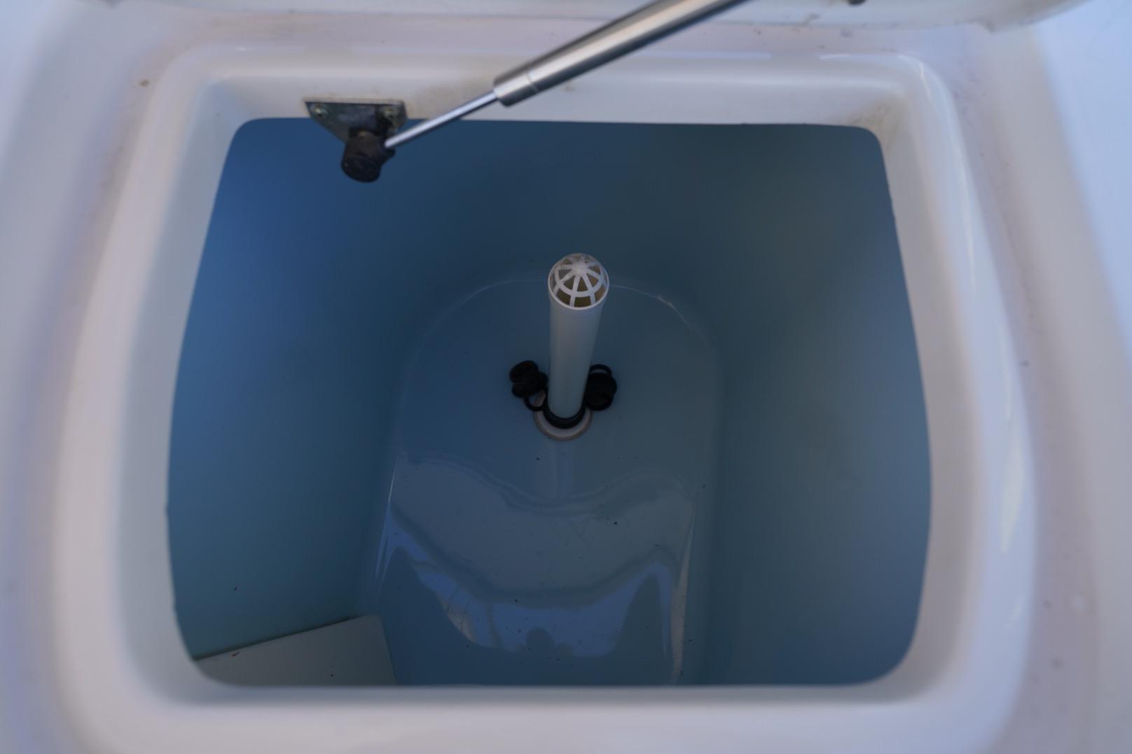 - Head - lockable console w/stand up head area, sink, bulk storage & marine head w/macerator, 10-gallon (37.9 l) holding tank and pump out