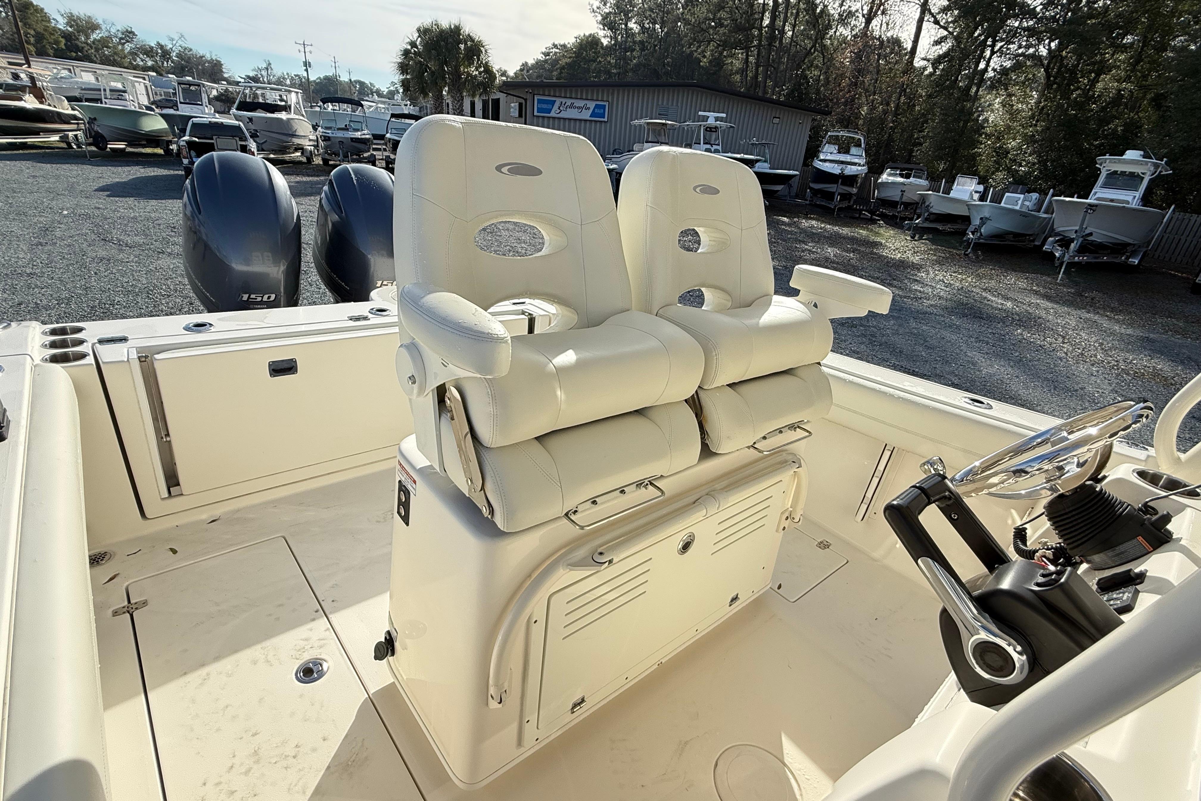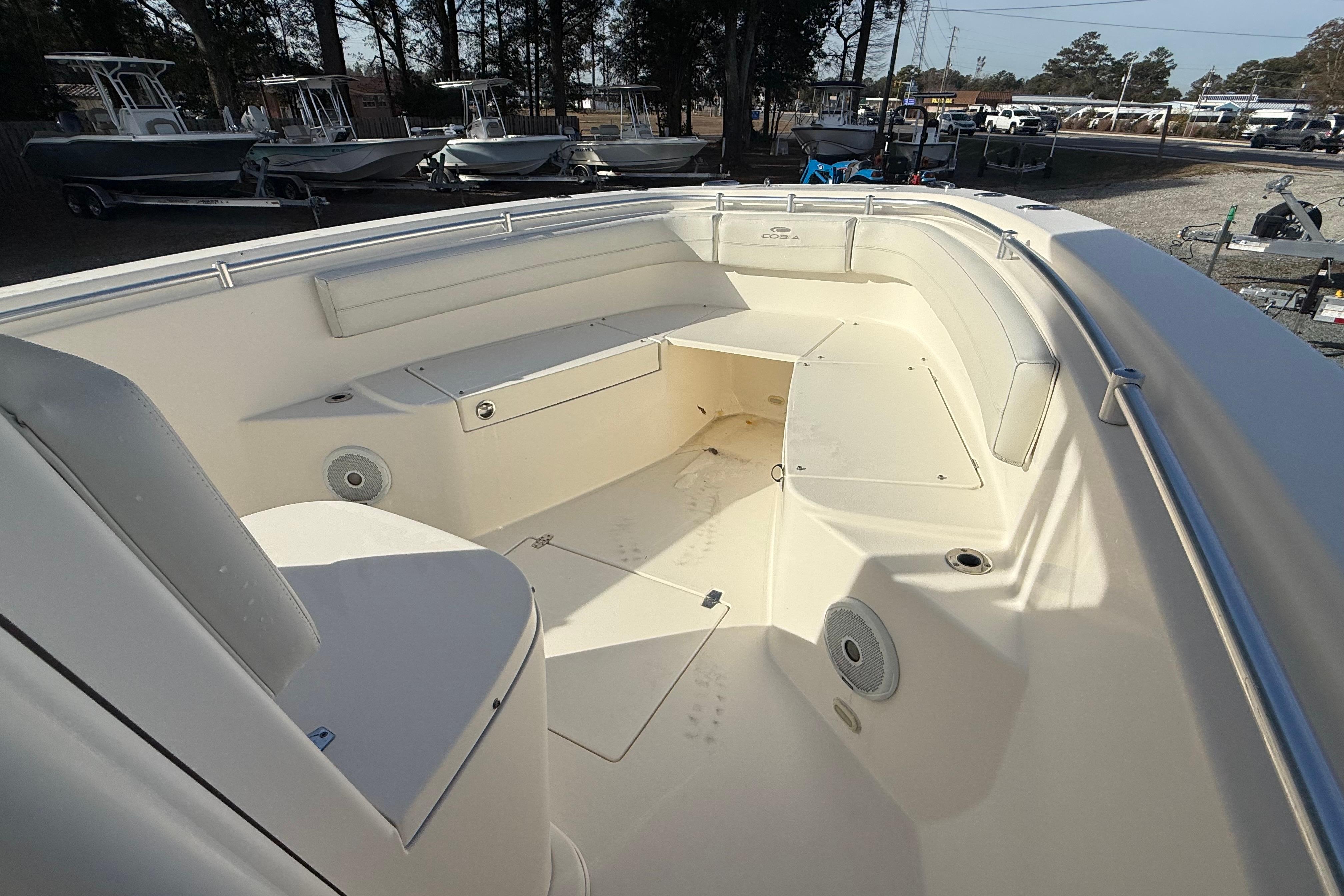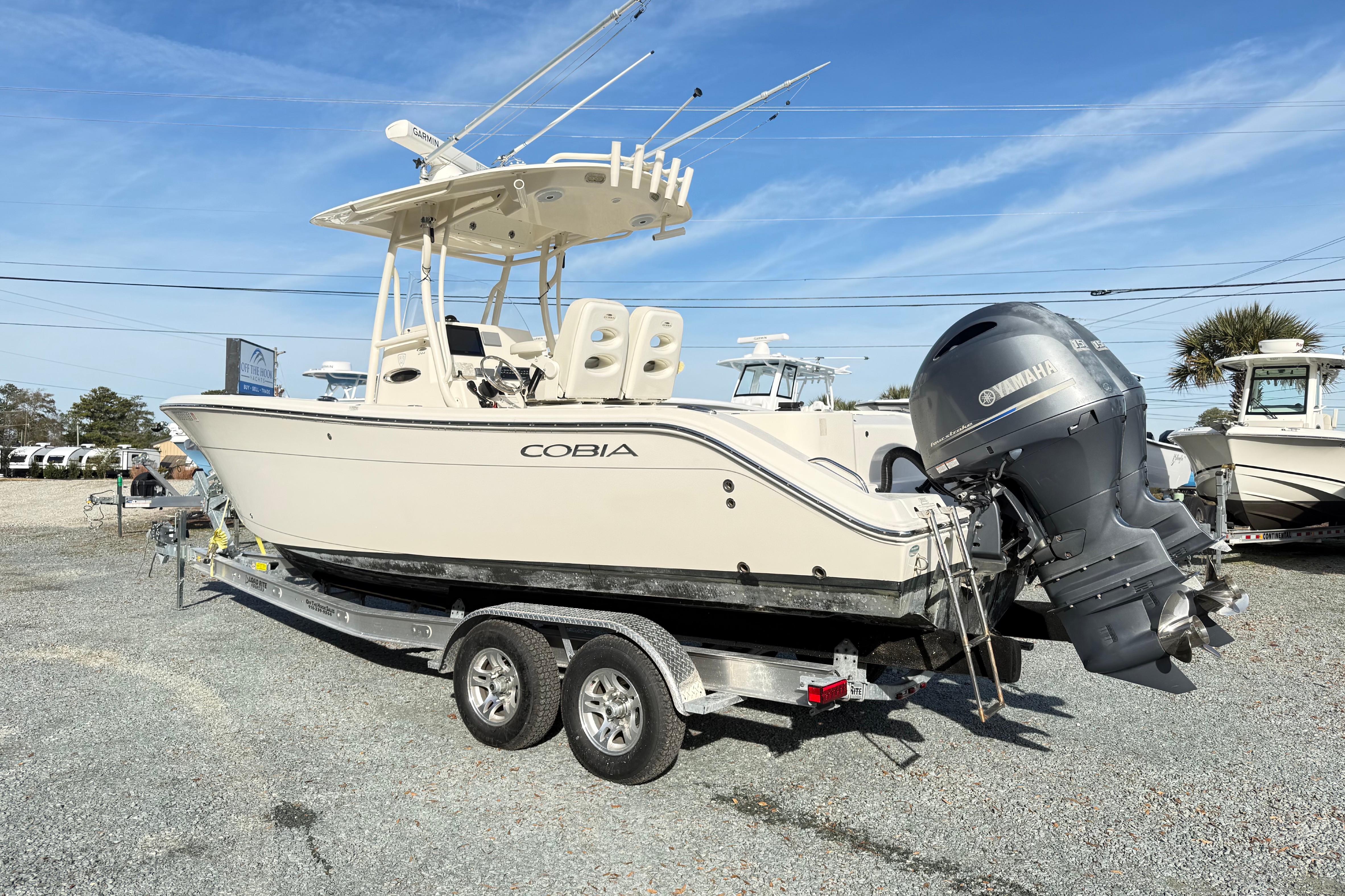 The Cobia 261 Center Console is a versatile boat designed for both serious anglers and families seeking a comfortable day on the water. Measuring 26 feet in length, it boasts a sharp entry and flared bow, ensuring a smooth, dry ride even in choppy conditions. Its spacious deck layout includes ample seating, a well-equipped leaning post, and plenty of storage for gear. Anglers will appreciate the large baitwell, rod holders, and fish boxes, while everyone will enjoy the convenience of the enclosed head. Powered by reliable Yamaha outboard engines, the Cobia 261 offers excellent performance and fuel efficiency, making it perfect for offshore fishing, cruising, and watersports. With its combination of functionality, comfort, and quality construction, the Cobia 261 is an excellent choice for anyone looking to maximize their boating experience.