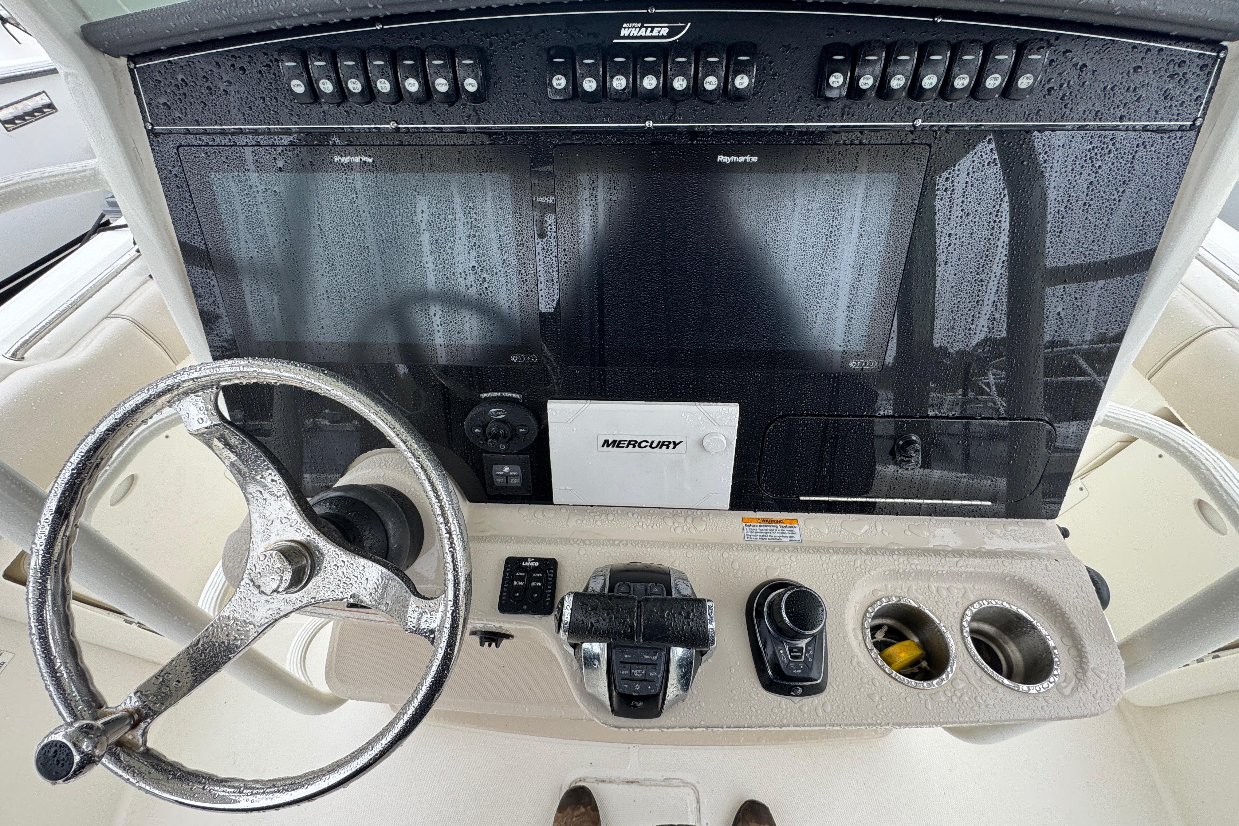 - 300 CXL V8 DTS Black Dual Mercury FourStrokes with hydraulic power steering (91 octane fuel recommended)