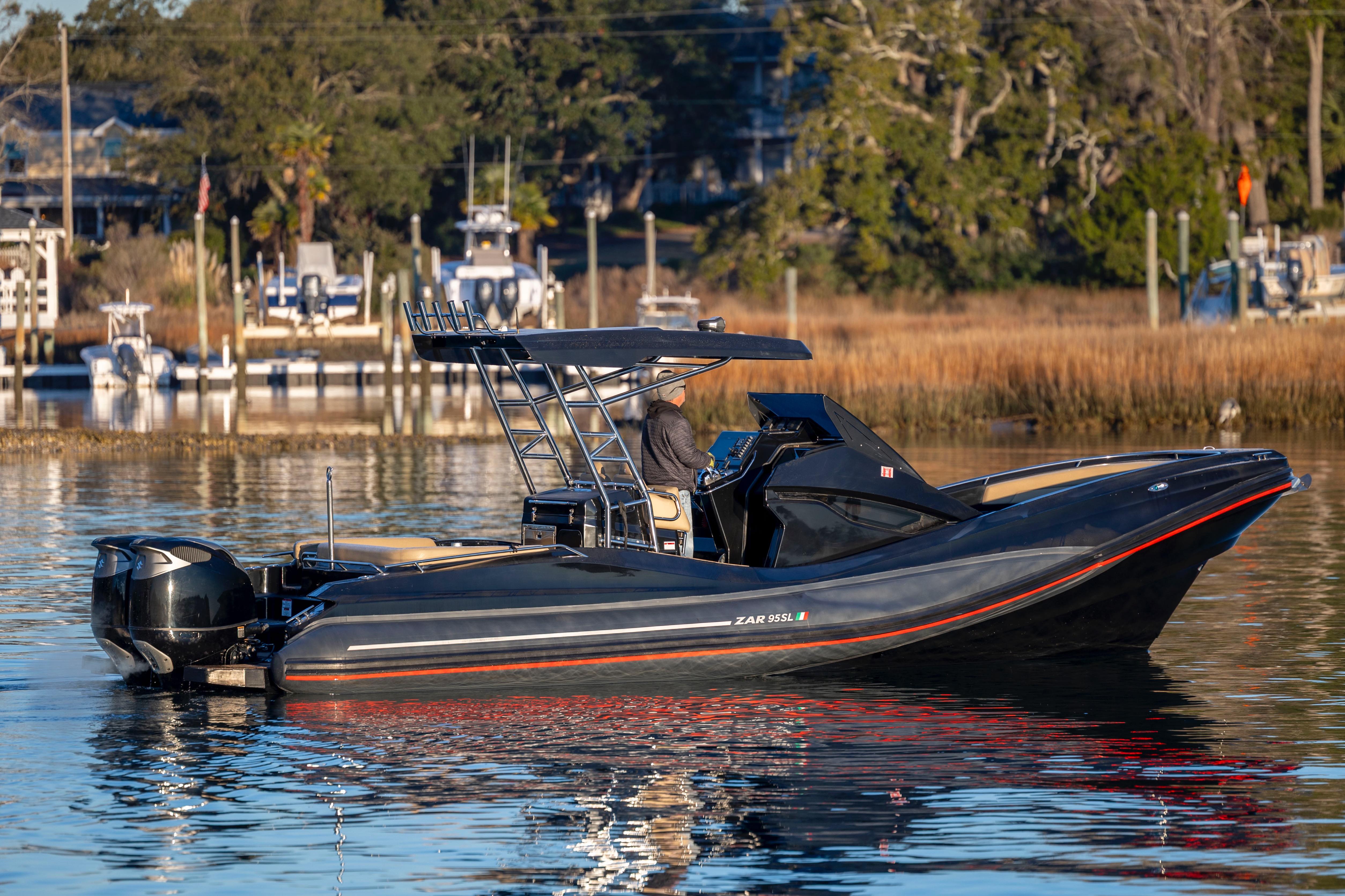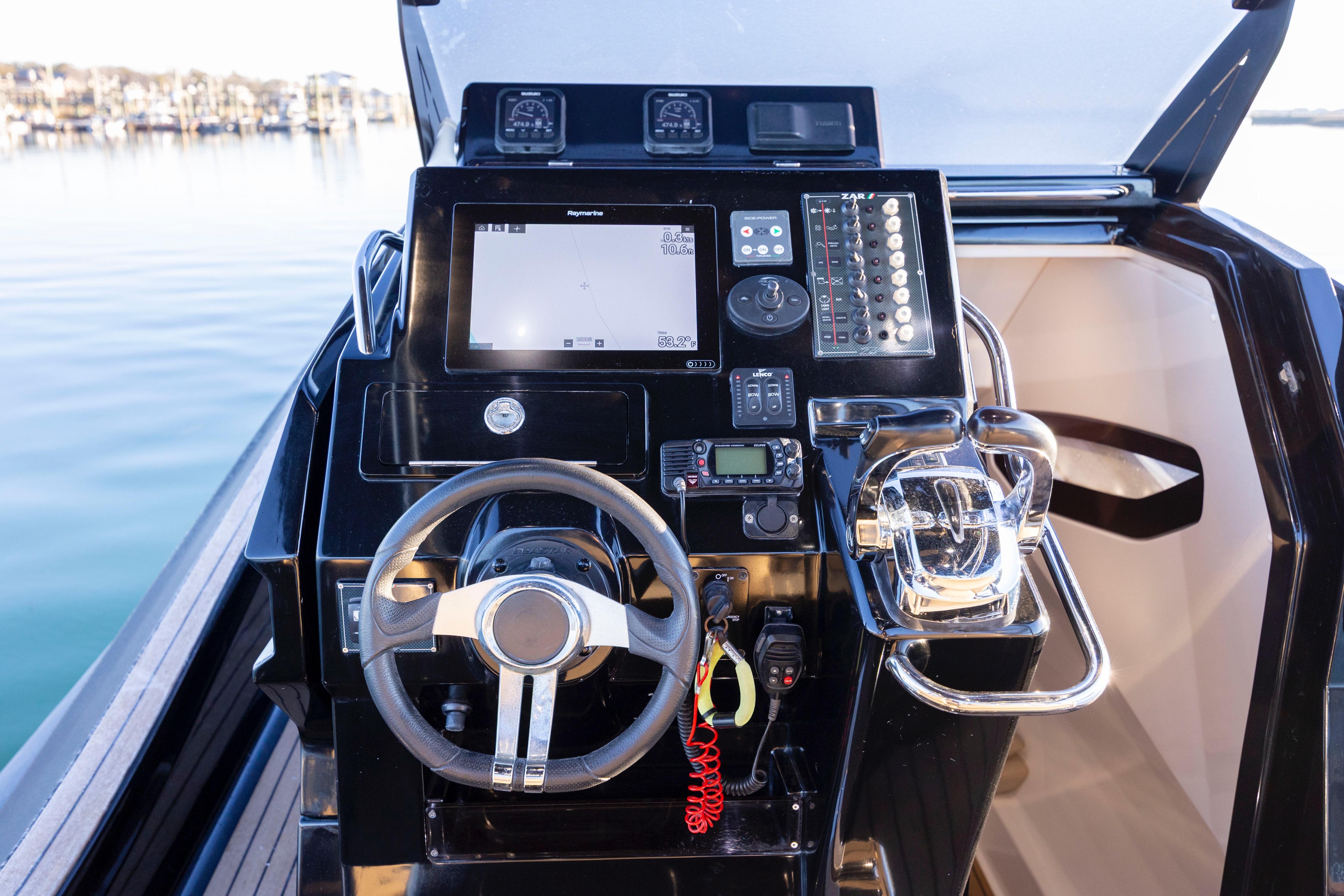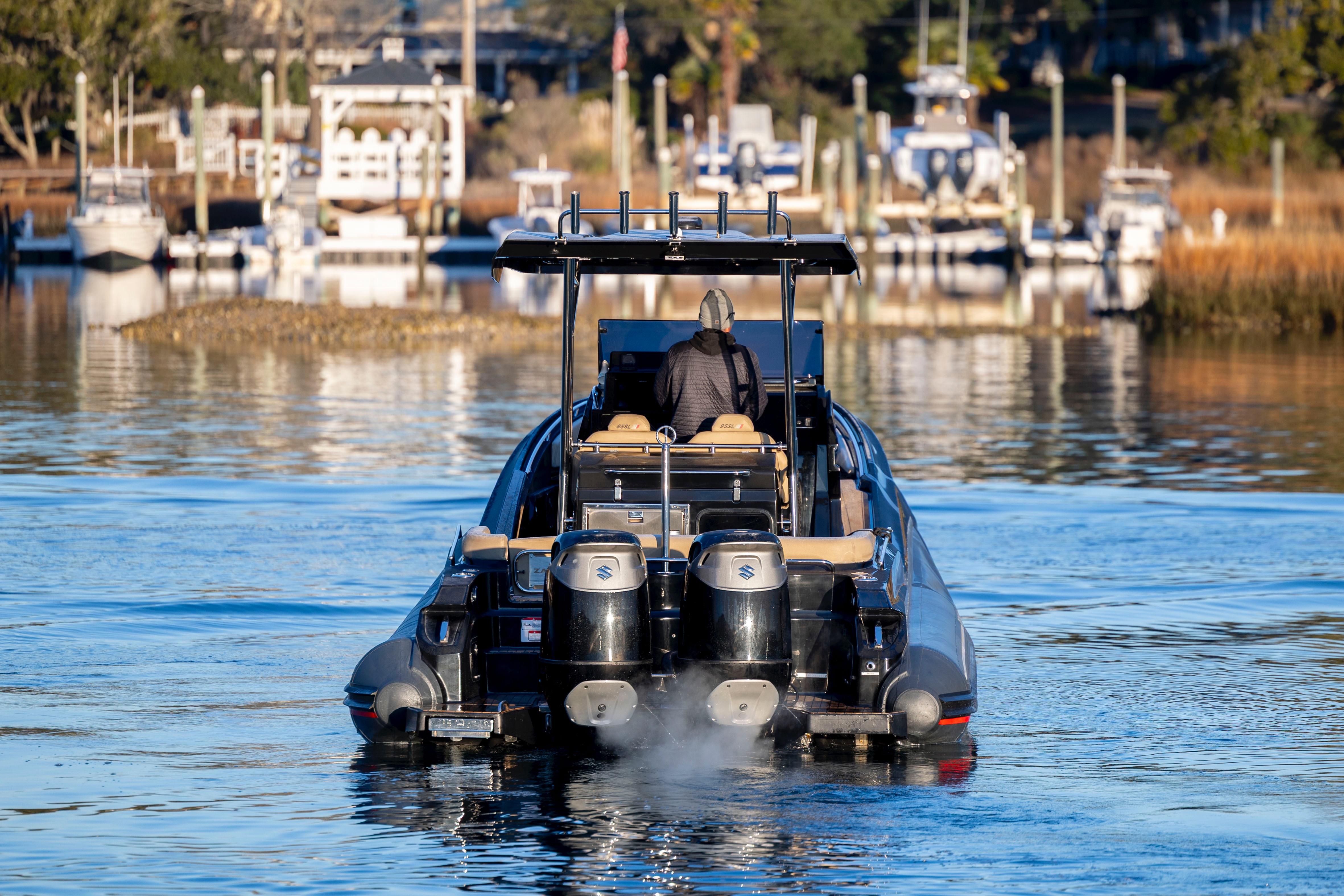 Twin Suzuki 350s(450hrs) push this performance rib over 65 mph