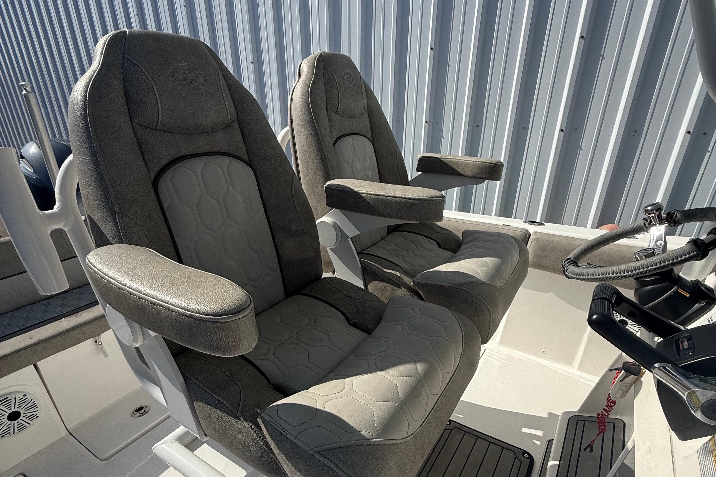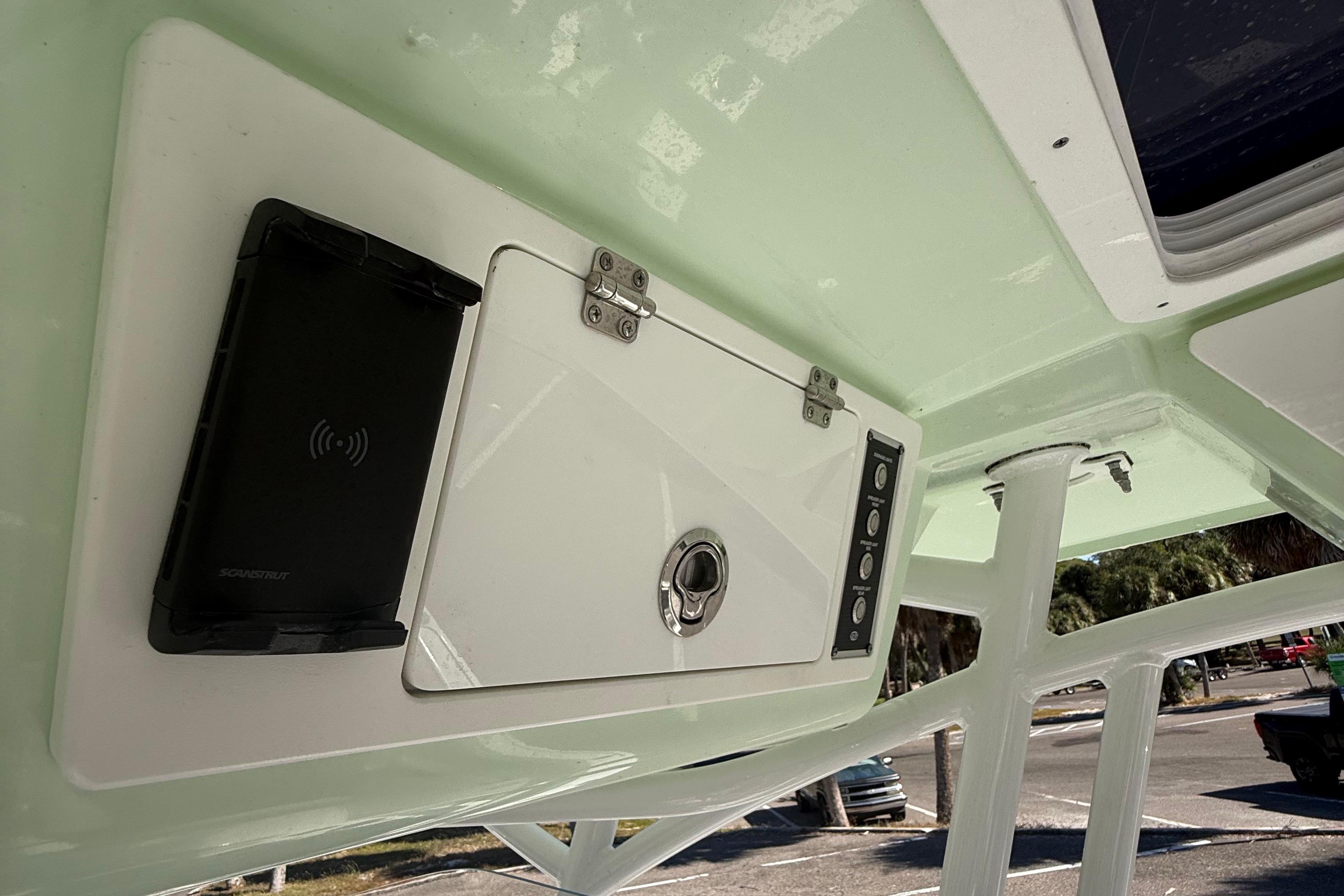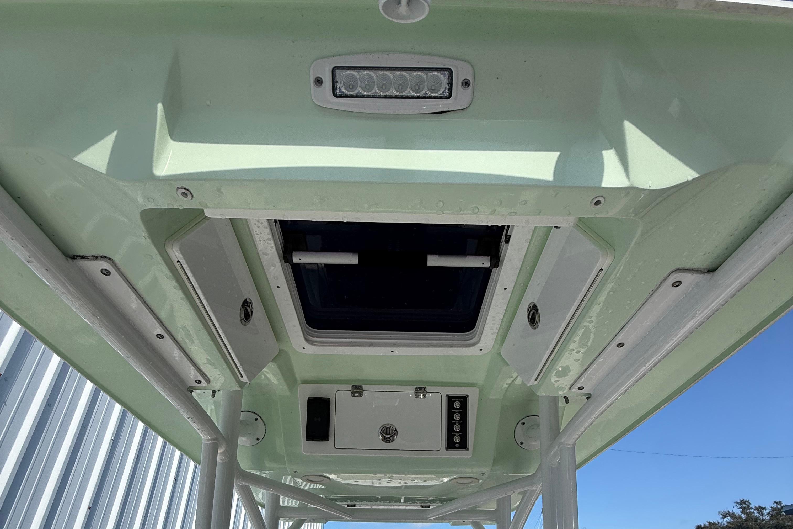 Ultima hard top - recessed LED spreader lights (2), molded-in storage box (4), safety storage box forward (1), Kicker stereo w/MP3 adaptor & 6 Kicker speakers in deck, LED lights (2) - red, blue & white (power cycle), rod holders (7), illuminated switch panel, safety storage box (forward), moonroof w/slide open glass, reinforced pads for dual antennas & Garmin radar