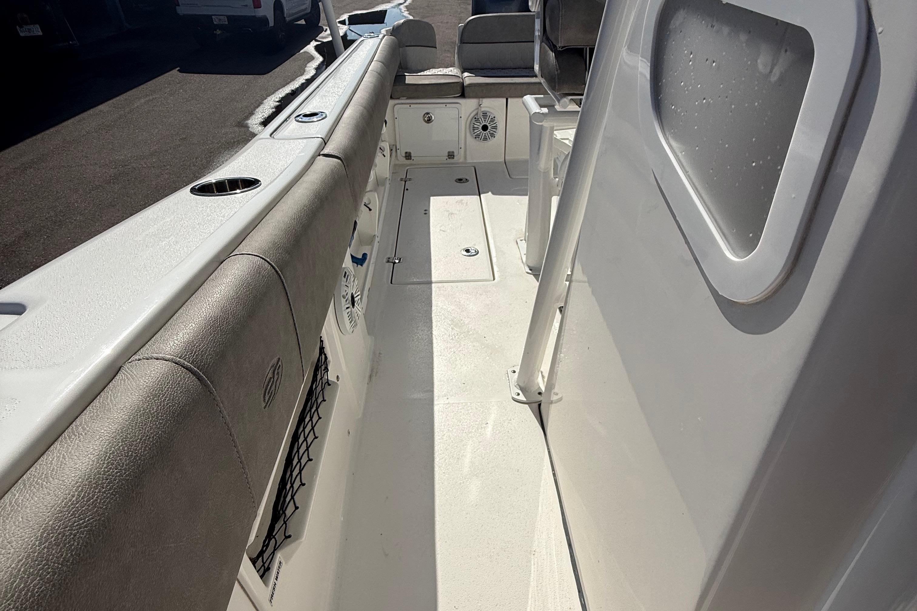 Super clean, well-cared-for 268 Commander equipped to fish offshore or cruise the sandbar in comfort. This one features the highly desirable forward coffin box layout, giving you extra seating, storage, and relaxation space on the bow. Soft ride, stable running hull, and efficient on fuel.