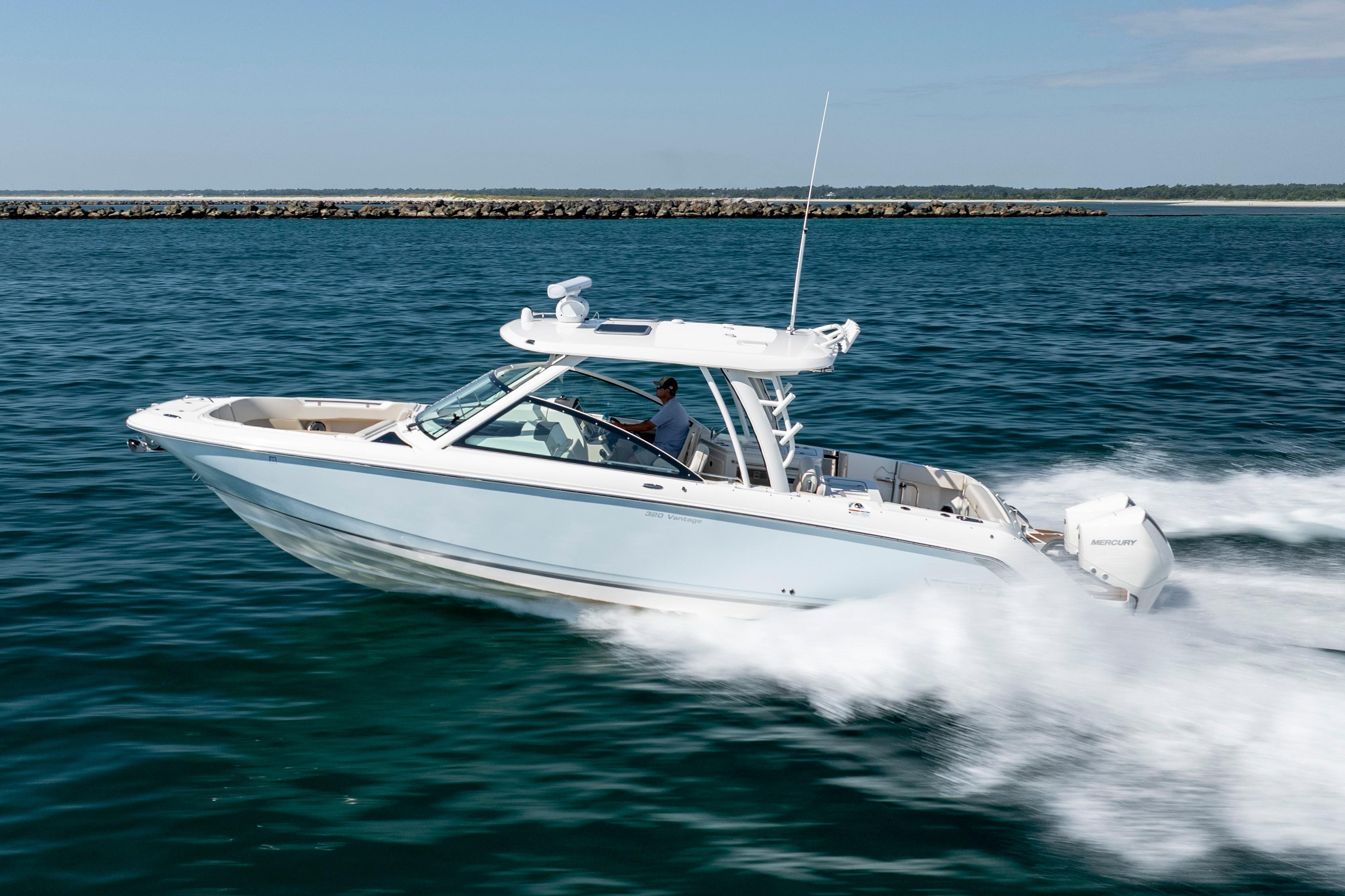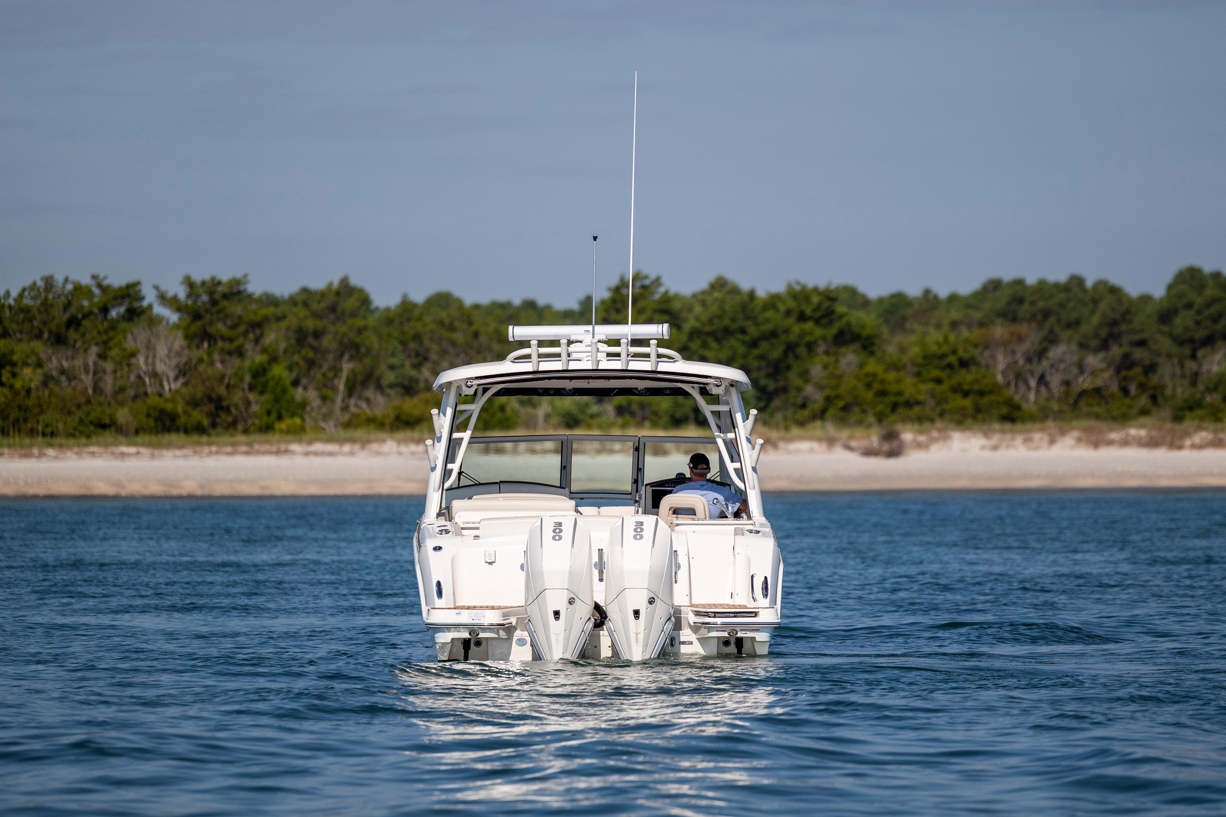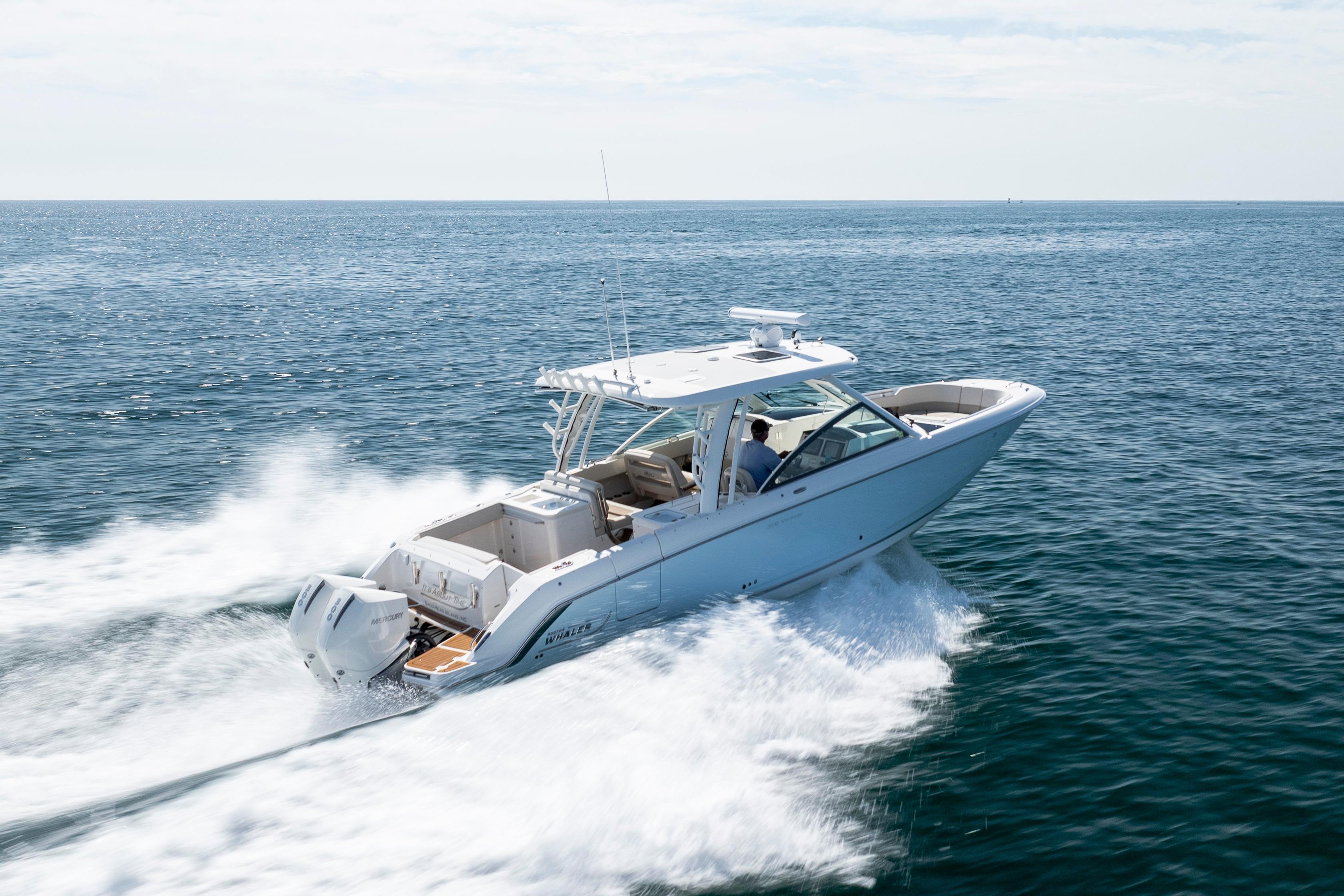 Cutting-edge features, great capacity and easy adaptability are hallmarks of the dual-console 320 Vantage®, winner of the National Marine Manufacturers Association's Innovation Award for it's convertible seating. Rock-solid control meets the ultimate in versatility and comfort with the many accessories and options the 320 provides. Serious fishing, joyful entertaining, day-long watersports or cruising and even a place to sneak in a nap or an overnight stay, the 320 is ready for your day. When the softest, safest ride meets the best equipped dual-console around, new possibilities become eminently possible. With Whaler, you can be confident to the core.