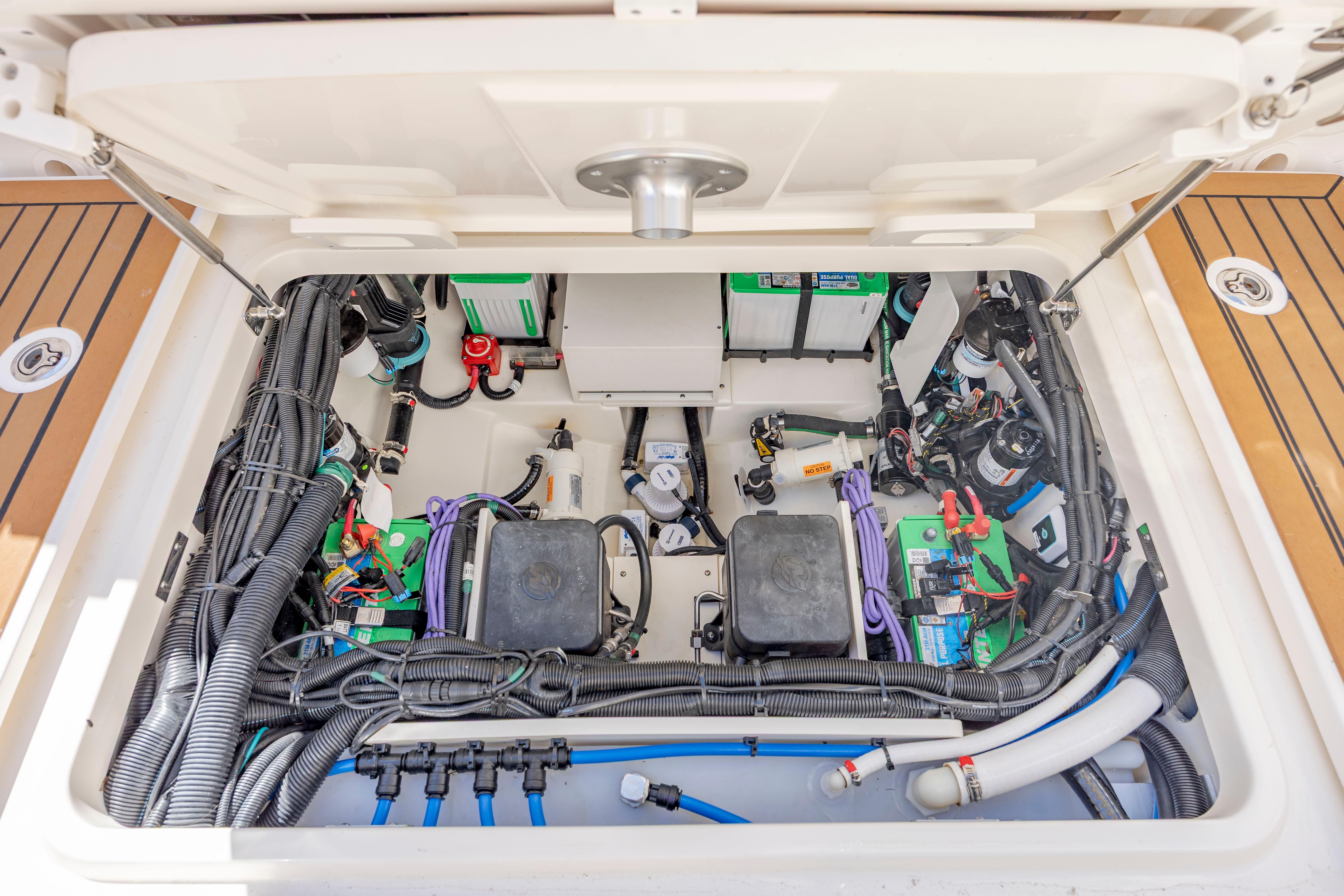 - Freshwater system (30 gallons) with bow and stern sprayers