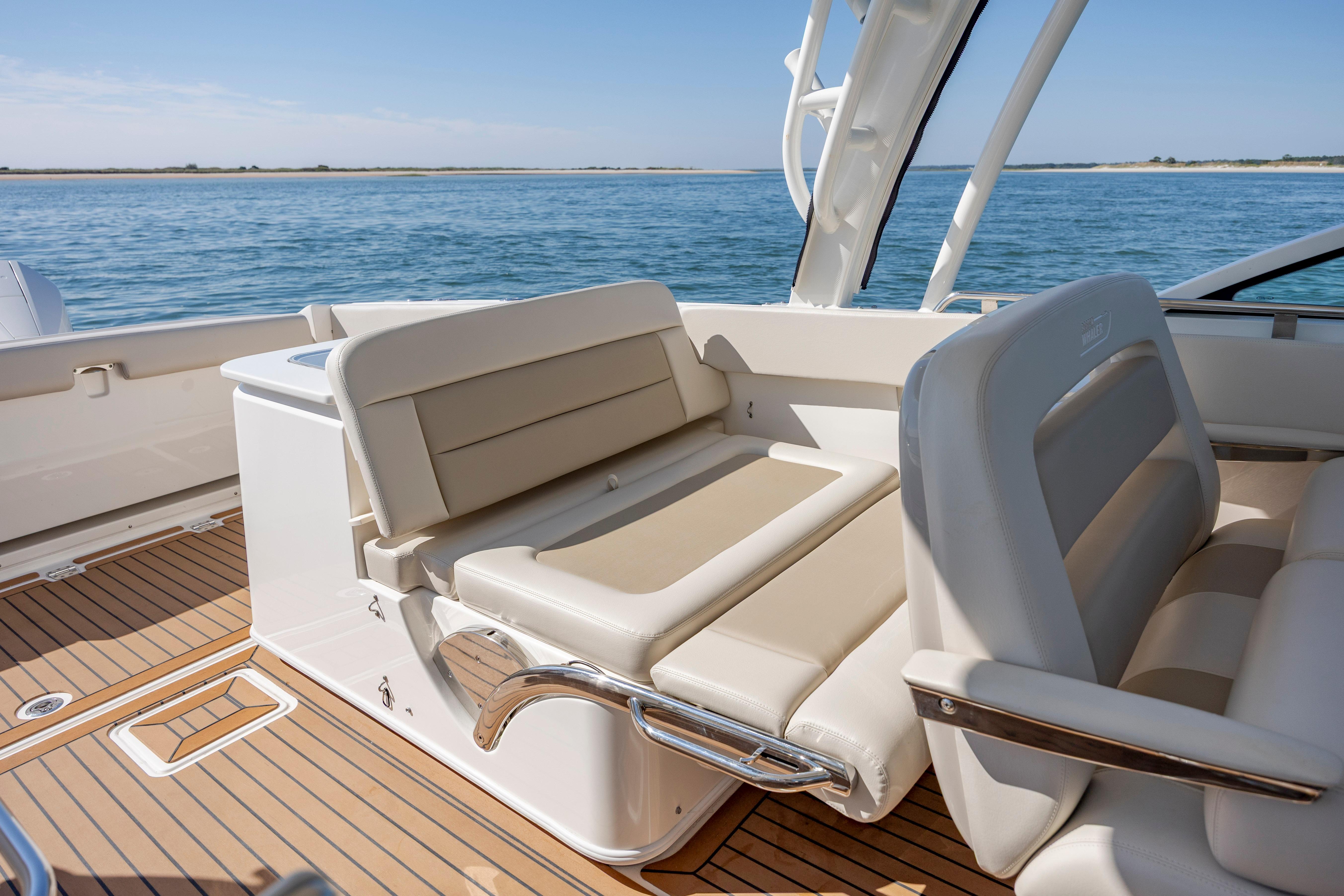 - Double convertible port lounge seat with storage (not available with Deluxe Prep Center with Livewell)