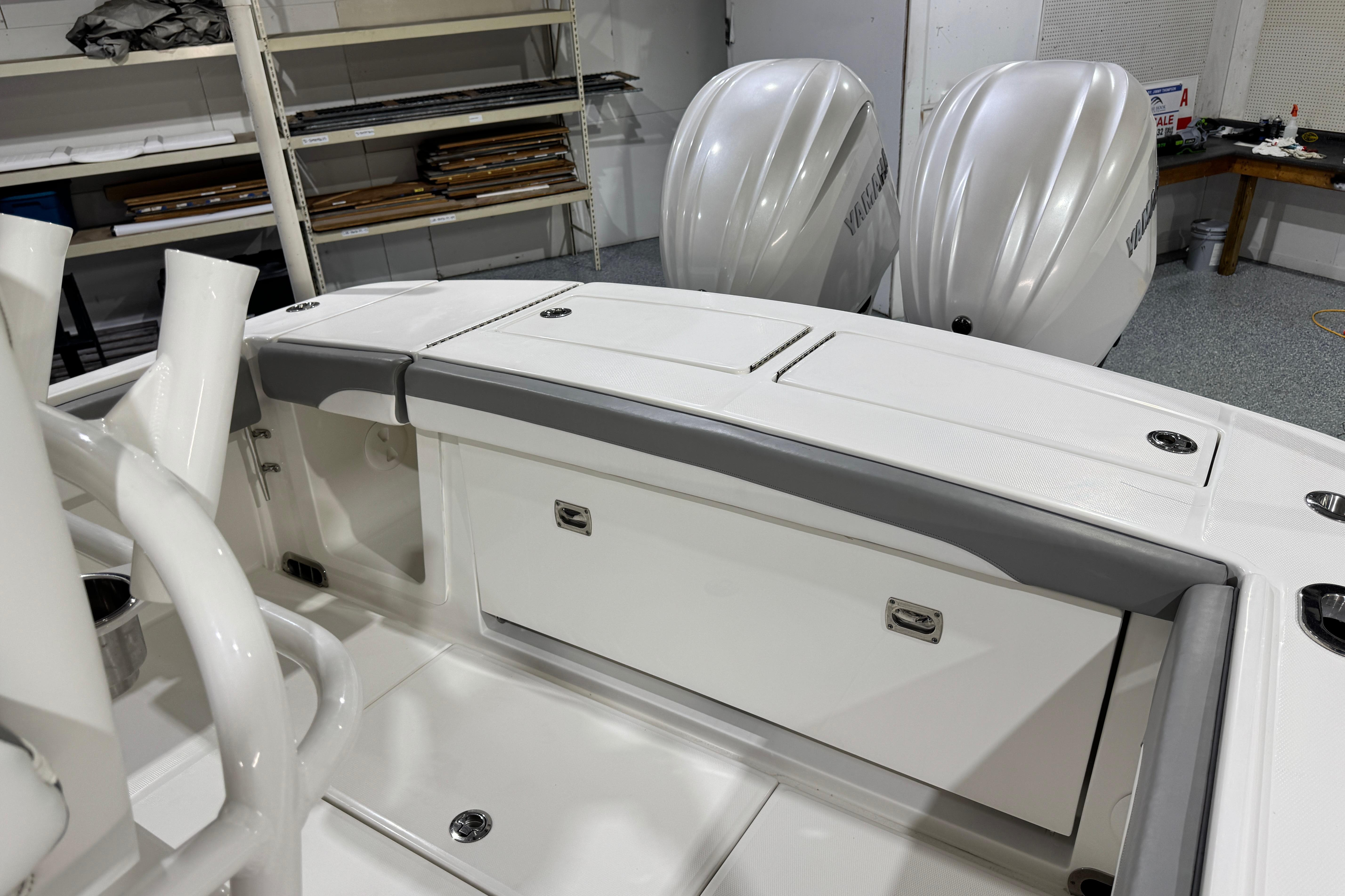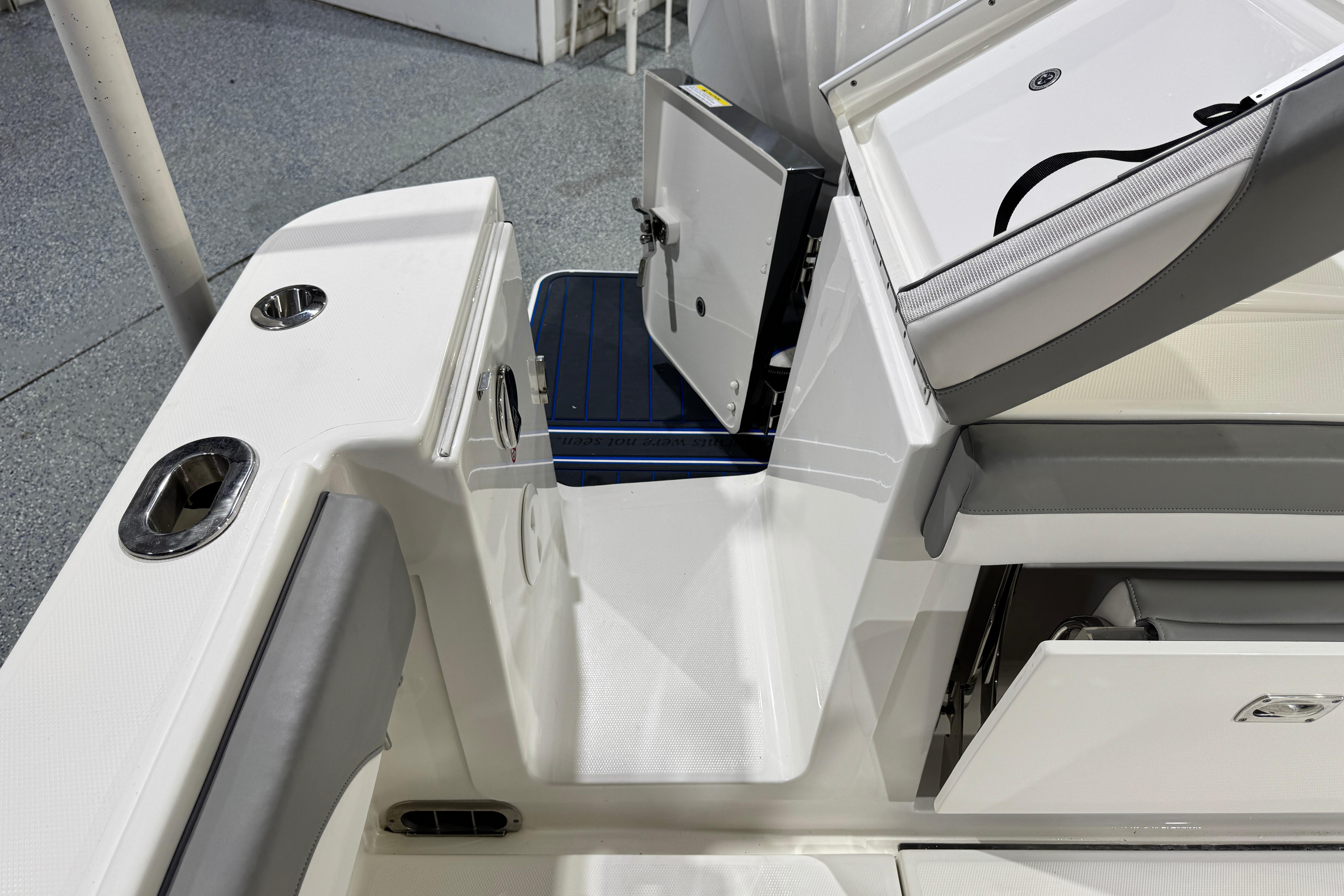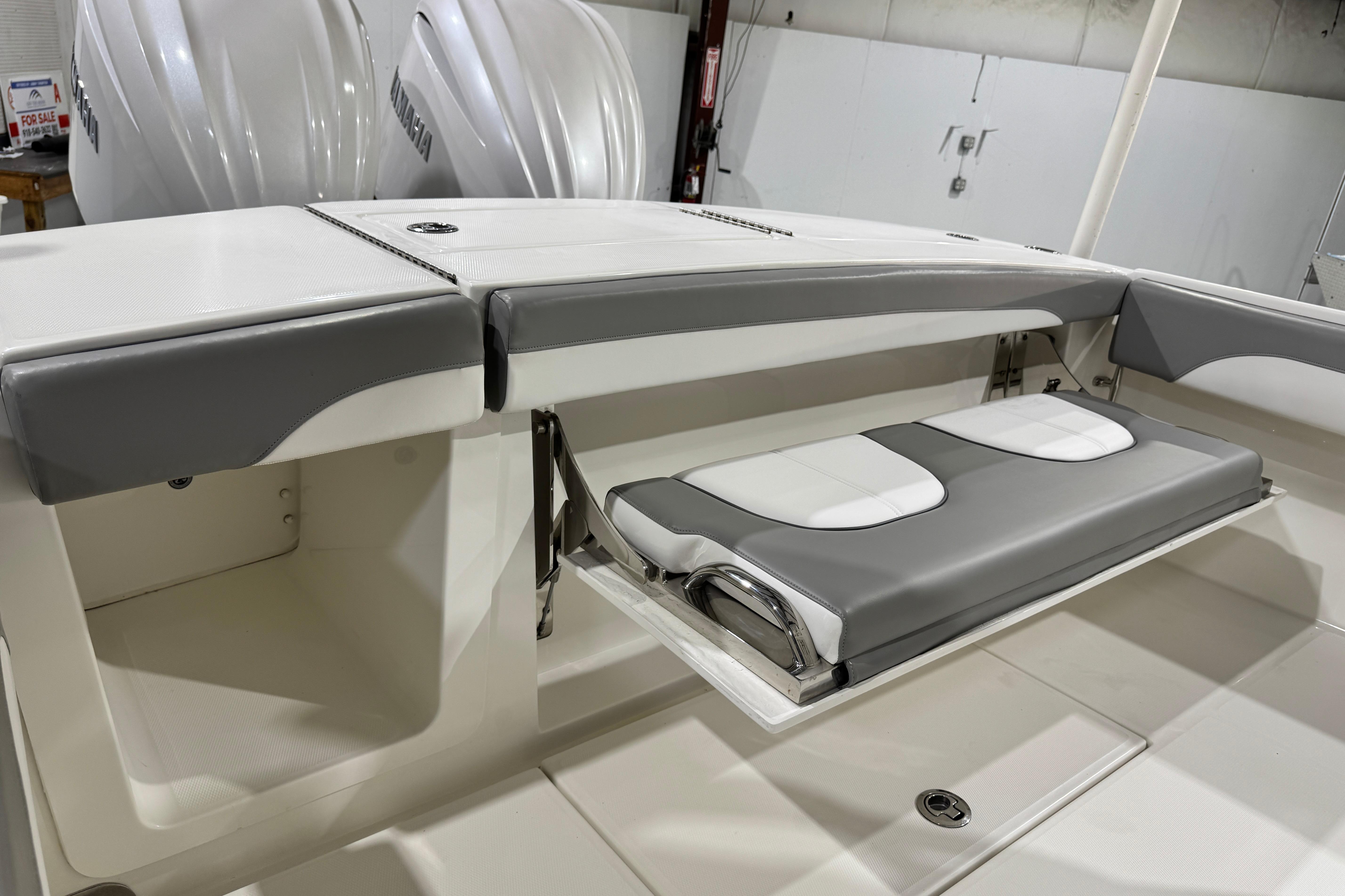 - 28 Tackle Center with Bolstered Seating, Individual Footrests, Seatback Rocket Launcher, and Tackle Storage