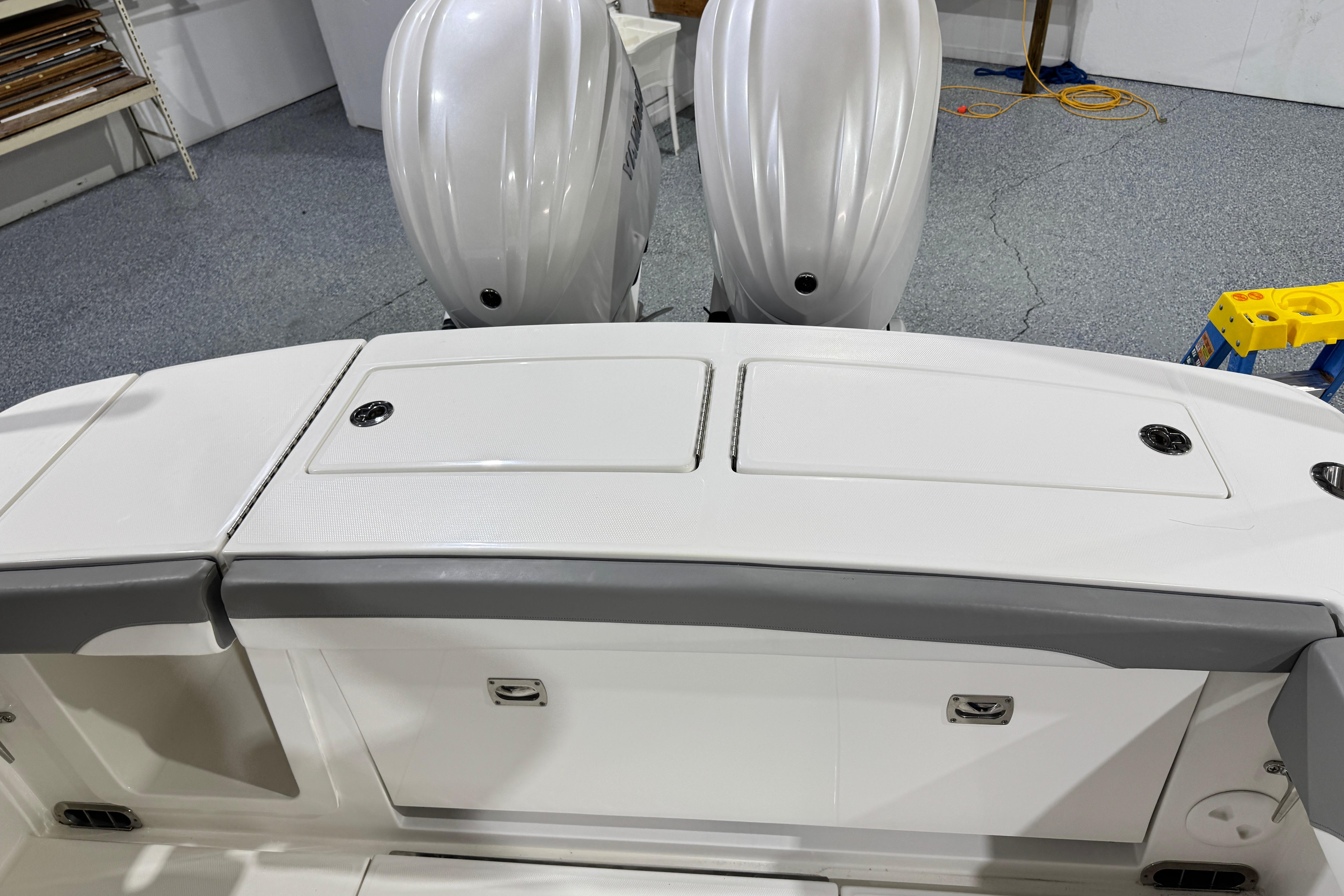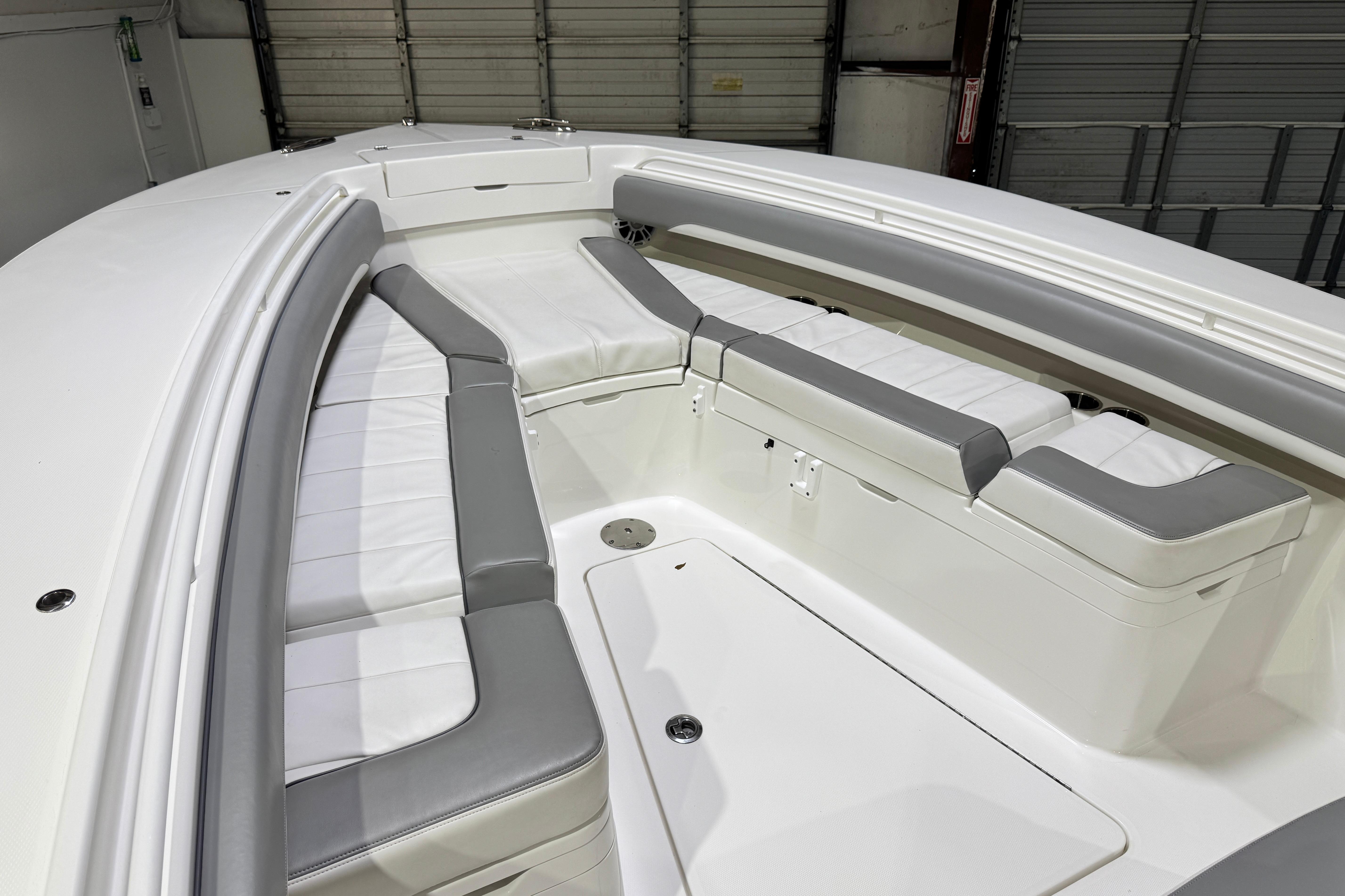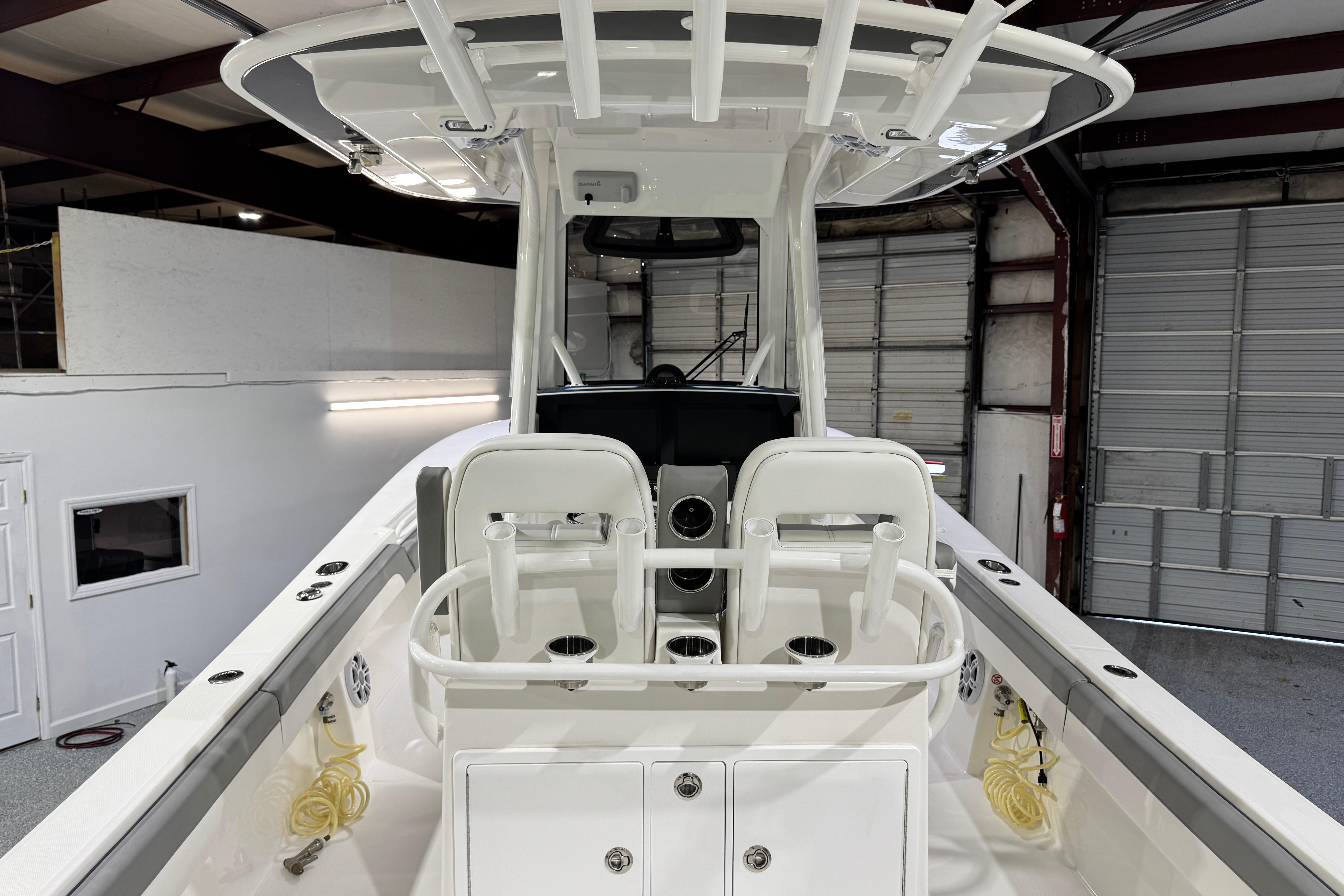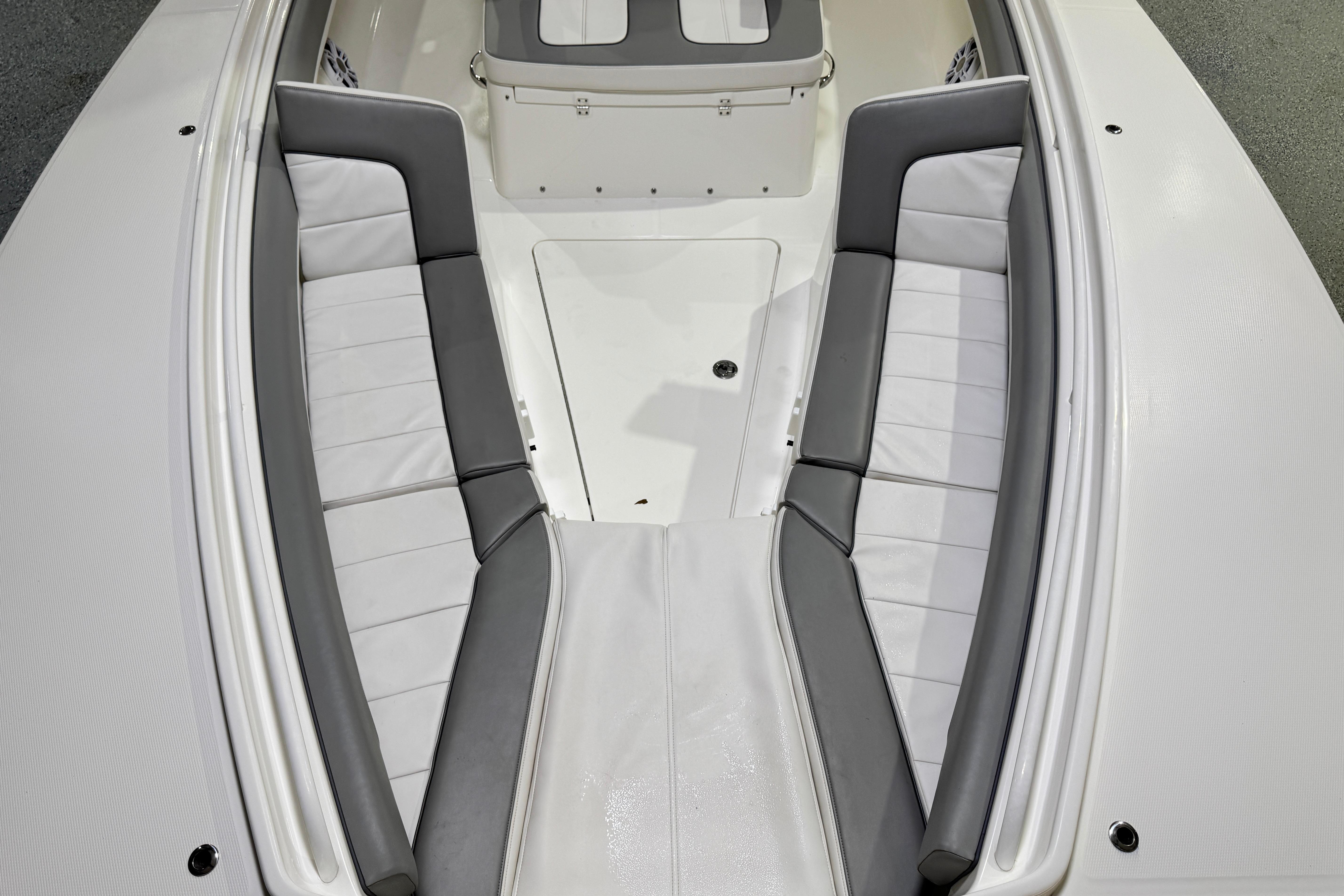 - 28 Tackle Center with Bolstered Seating, Individual Footrests, Seatback Rocket Launcher, and Tackle Storage