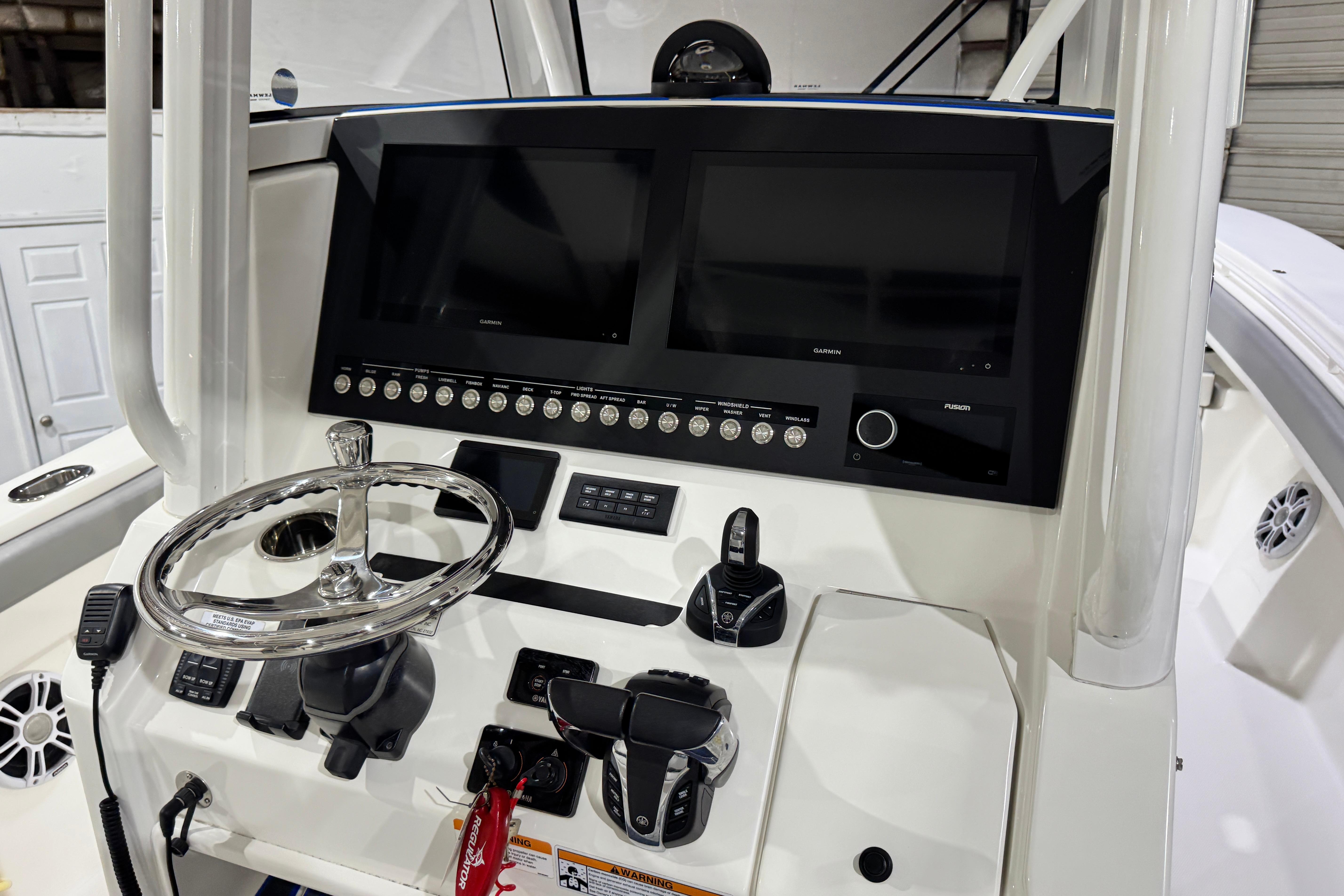 Upgraded audio package: Fusion Apollo 770 Marine stereo, 10 backlit speakers w/ subwooofer