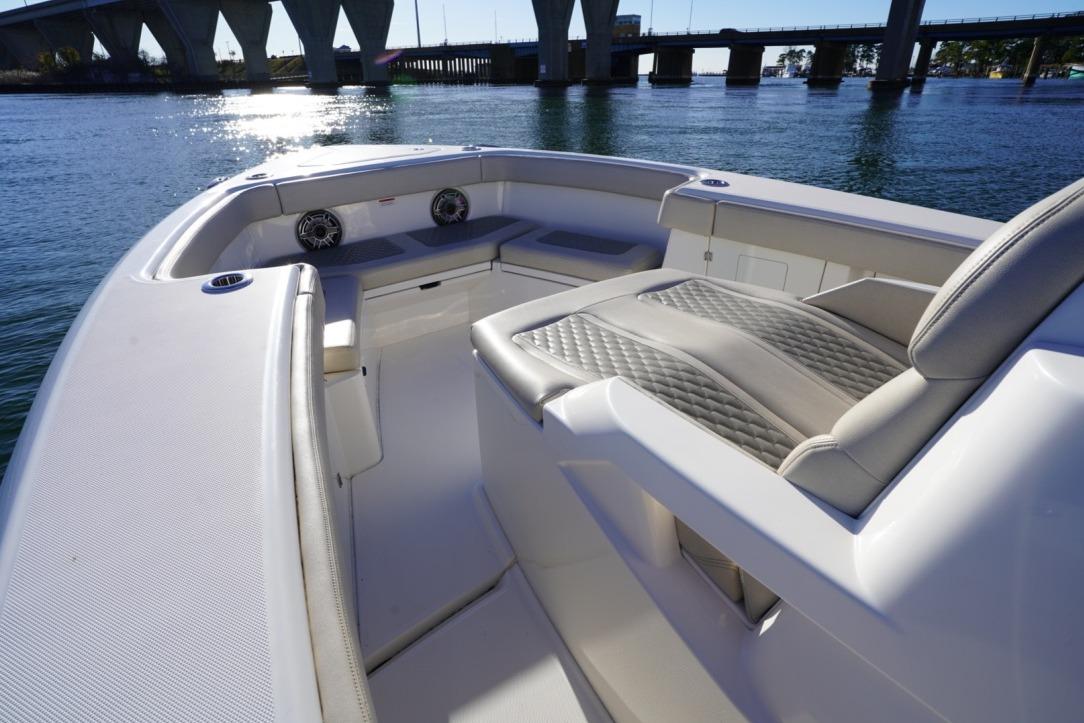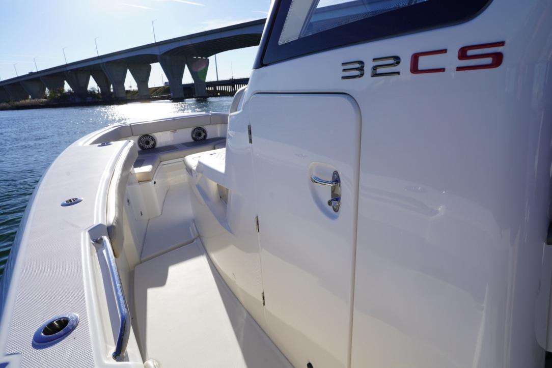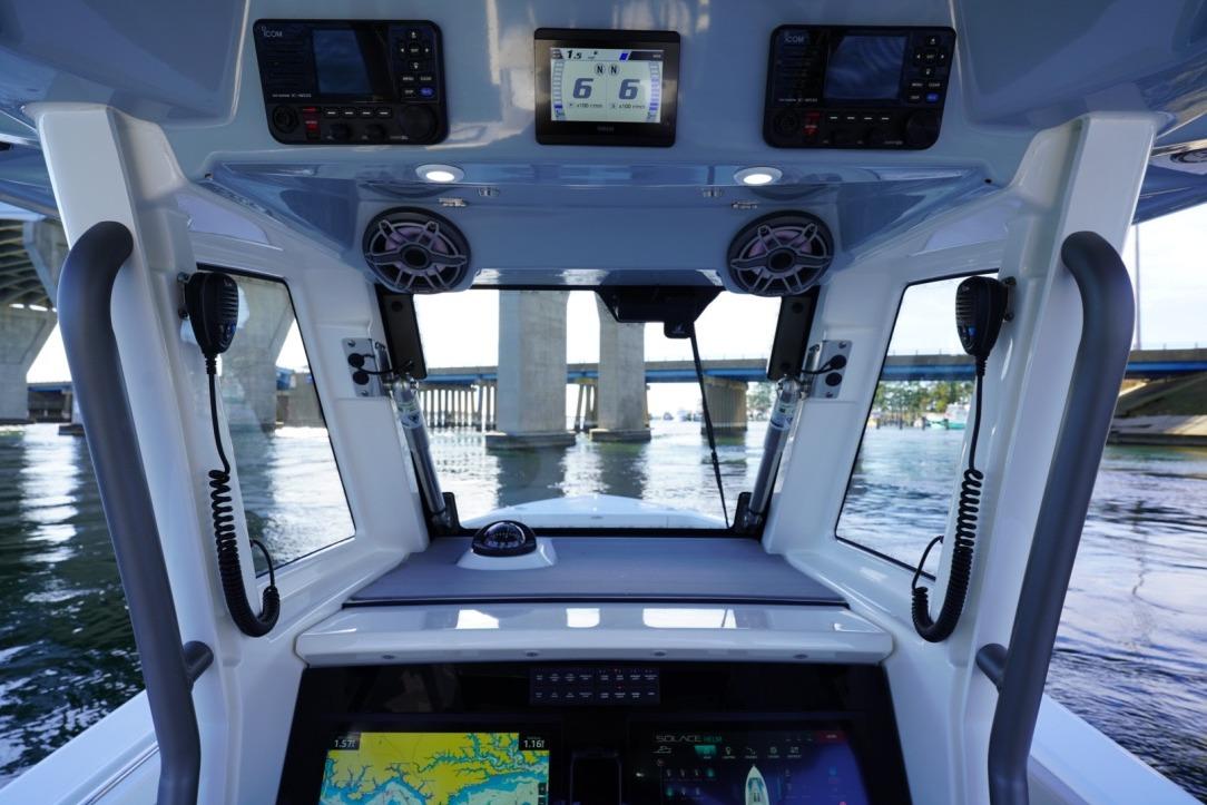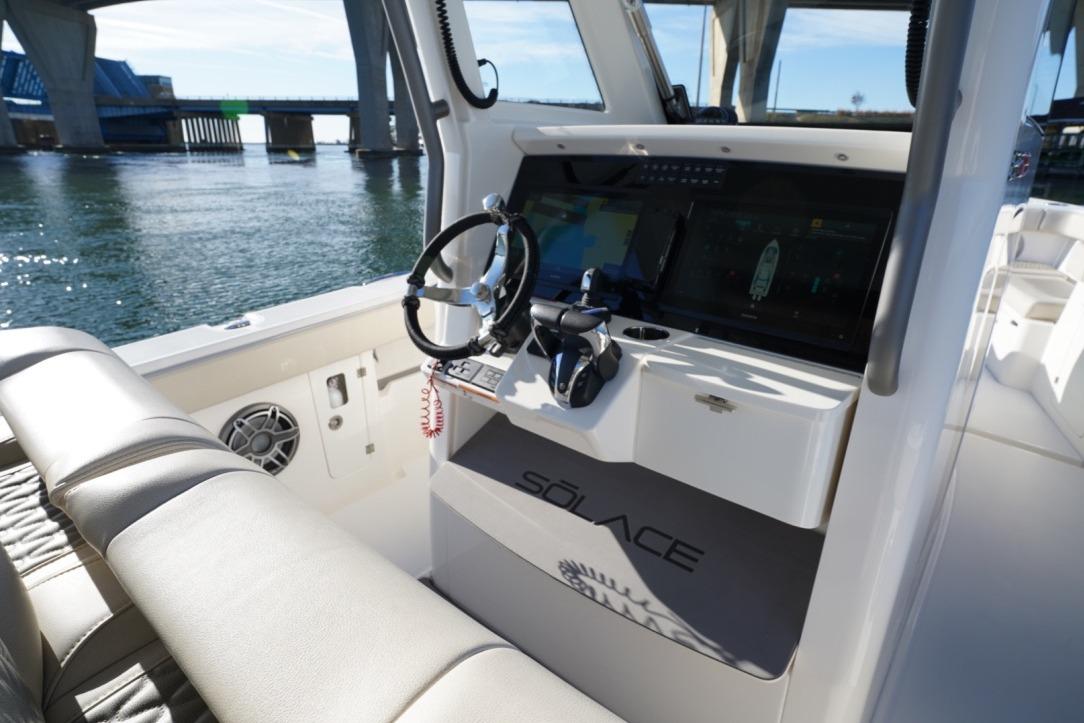 Experience cutting-edge performance and luxury with this 2024 Solace 32 CS, powered by twin Yamaha 300s with Helm Master EX joystick steering and autopilot. Built for serious offshore comfort, this vessel delivers a remarkably smooth ride and is loaded with premium features—magnetized gunwales and seating, Fjord White hull, Kingston Grey hardtop underside, and a sleek Winter Gray interior.